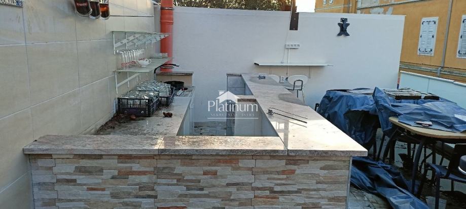 Prodaje se poslovni prostor s terasom u Centru Pule na odličnoj poziciji potpuno opremljen. U donjem dijelu nalazi se prostor za pripremu i prodaju hrane i toaleti, a iznad je terasa sa šankom za posluživanje pića. Tlocrtno površine 42m2.