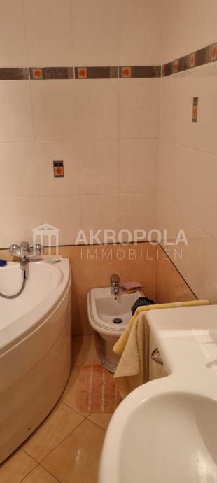 Veći stan ima 3 sobe, dnevni boravak ,kuhinja, blagovaonica, hodnik, 2 kupatila i velika terasa. Sa roštiljem i sudoperom.
