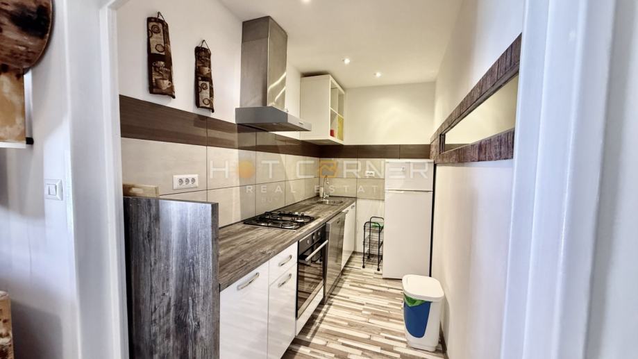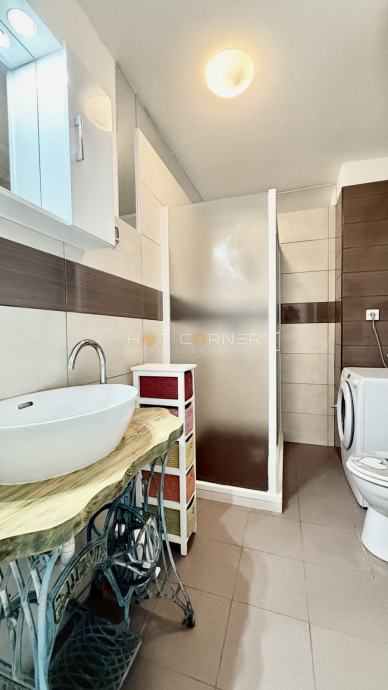 Opremljen je PVC stolarijom, klima uređajem, centralnim grijanjem na plin, funkcionalnom kuhinjom i perilicom rublja.