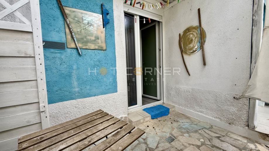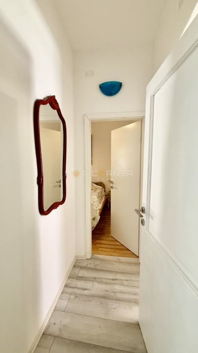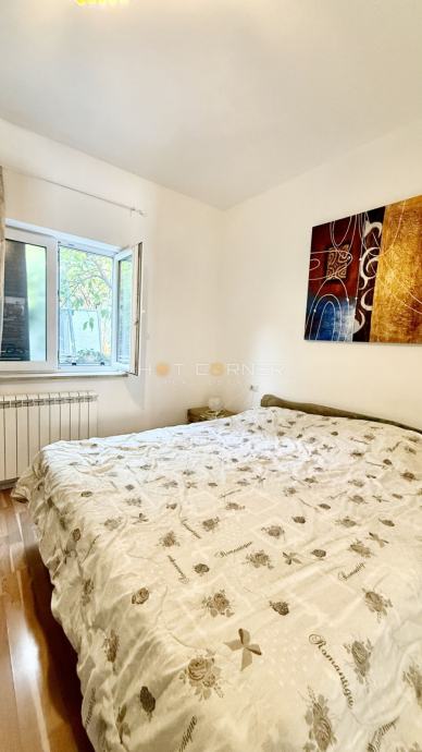 Stan se nalazi u prizemlju i sastoji se od dnevnog boravka, kuhinje, dvije spavaće sobe, kupaonice i male terase.