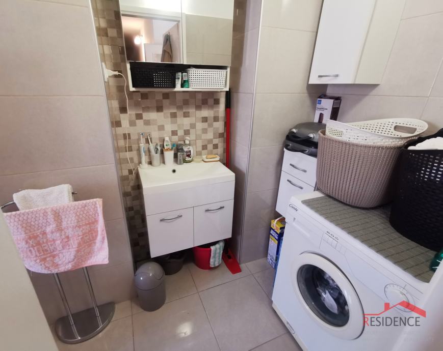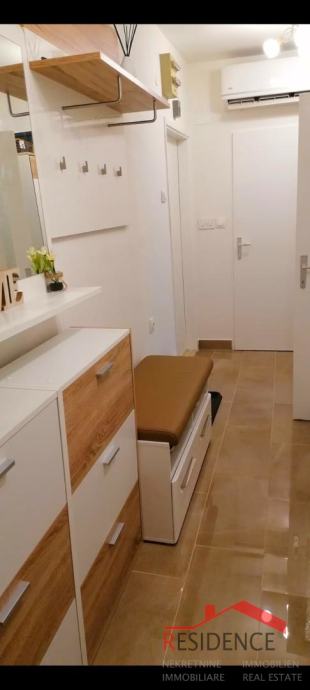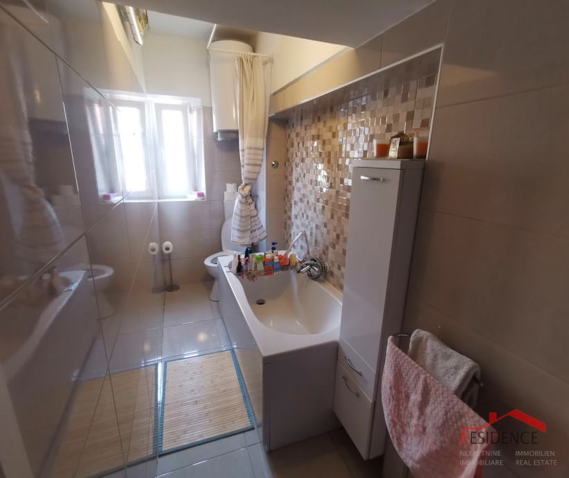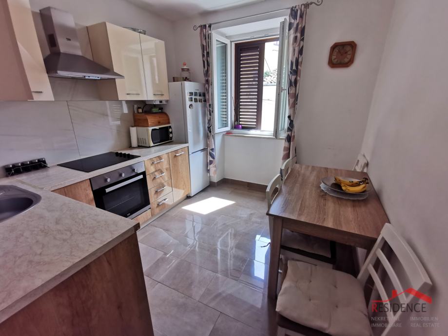 Pula, Centar, stan površine 61.39 m2, nalazi se na prvom katu manje stambene zgrade. Stan se sastoji od hodnika, kuhinje s blagovaonicom, dnevnog boravka, dvije spavaće sobe i kupaonice. Ima novu PVC stolariju i aluminijske rolete, namješten je te se takav i prodaje.