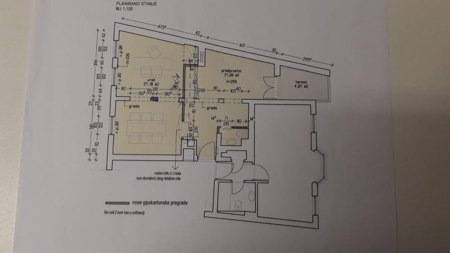 Nekretnina je funkcionalnog tlocrtnog rasporeda i sastoji se od kupaonice, jedne spavaće sobe, te open space prostora sa dnevnim boravkom, kuhinjom sa blagovaonicom i balkona, te je ovaj stan do sada bio prenamijenjen u poslovni prostor.