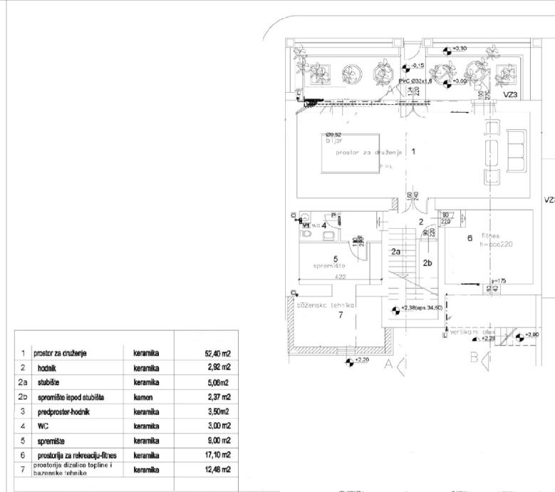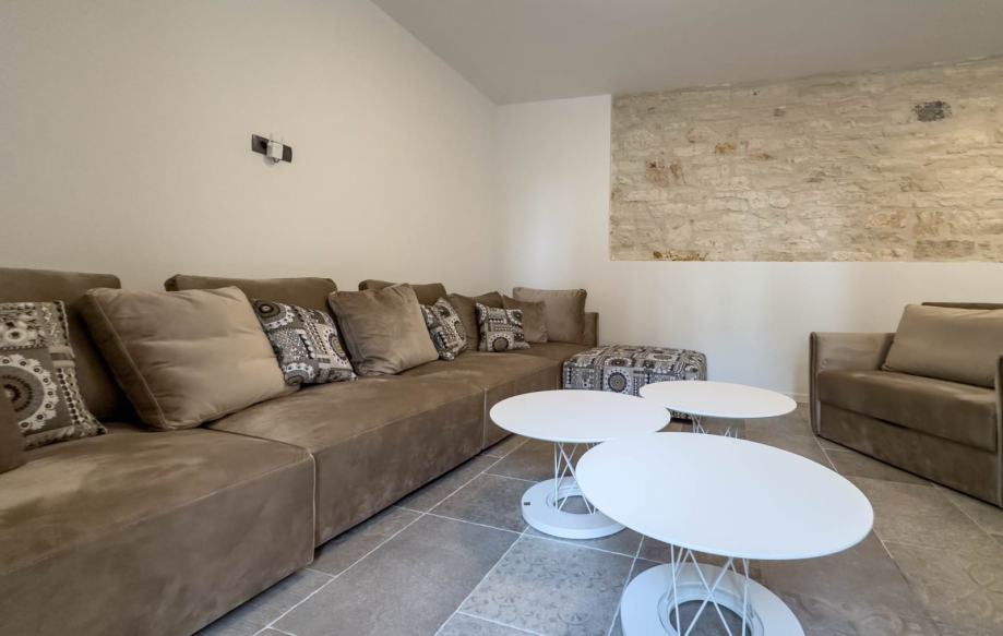 Kuća se sastoji od 4 spavaće sobe, 4 kupaone, posebno odvojeni WC, dnevnog boravka sa kuhinjom i blagovaonom, game rooma, fitnesa, saune i male vinoteke.