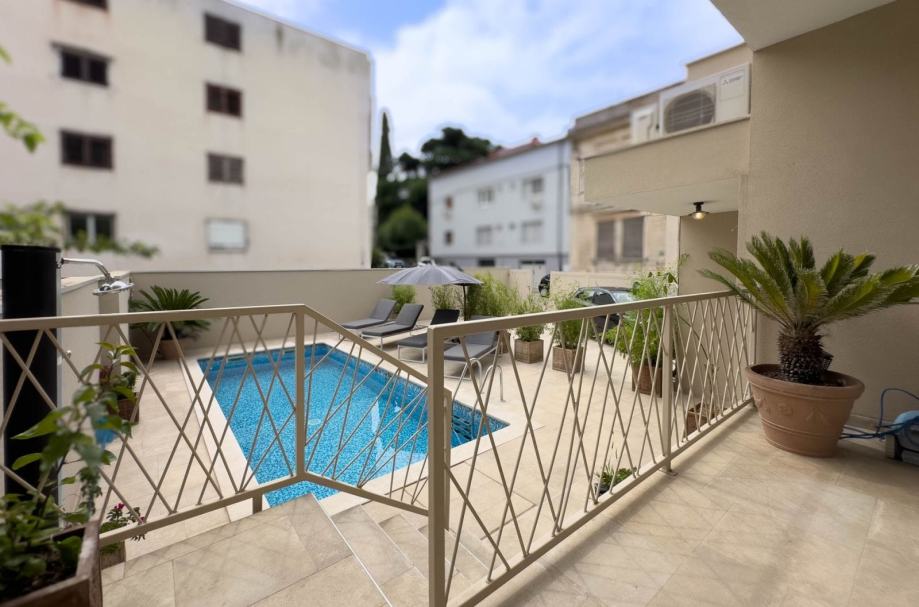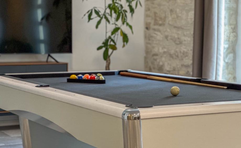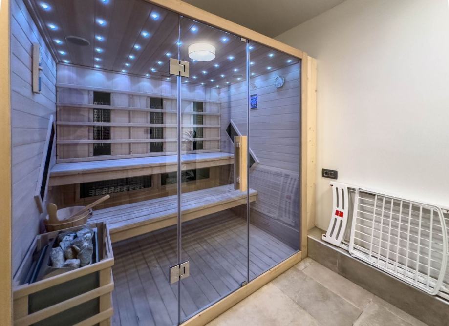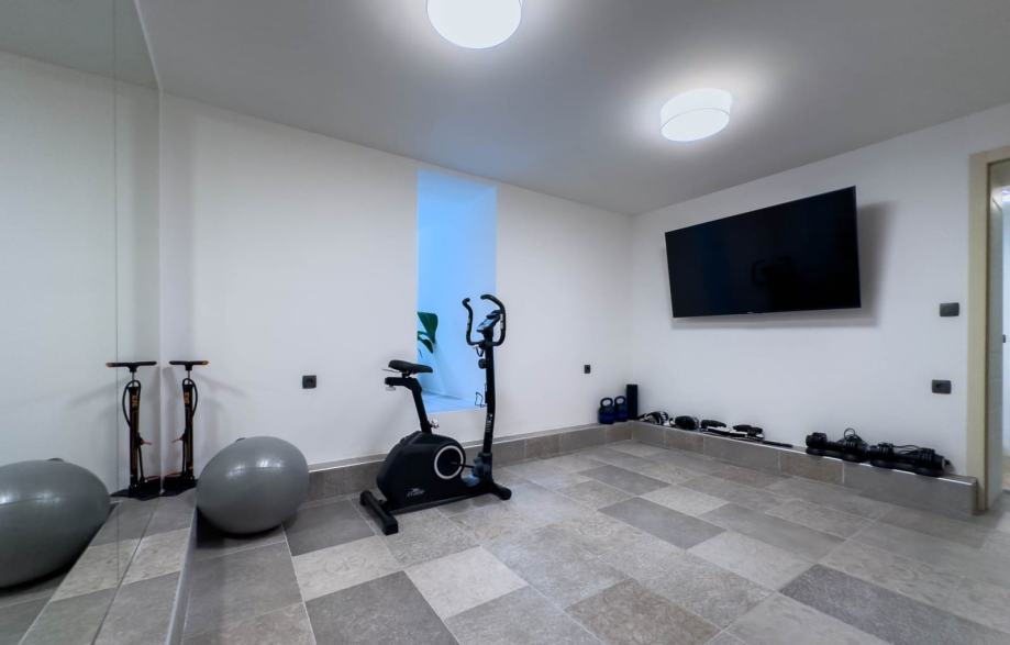 Kuća ima oko 350 m2, bazen i zatvoreni parking za 3 auta, klime u svim prostorima, saunu, game room sa bilijarom i manji fitnes. Bazen sa protustrujnim tokom za plivanje. Kombinirana sauna, finska i infracrvena.
