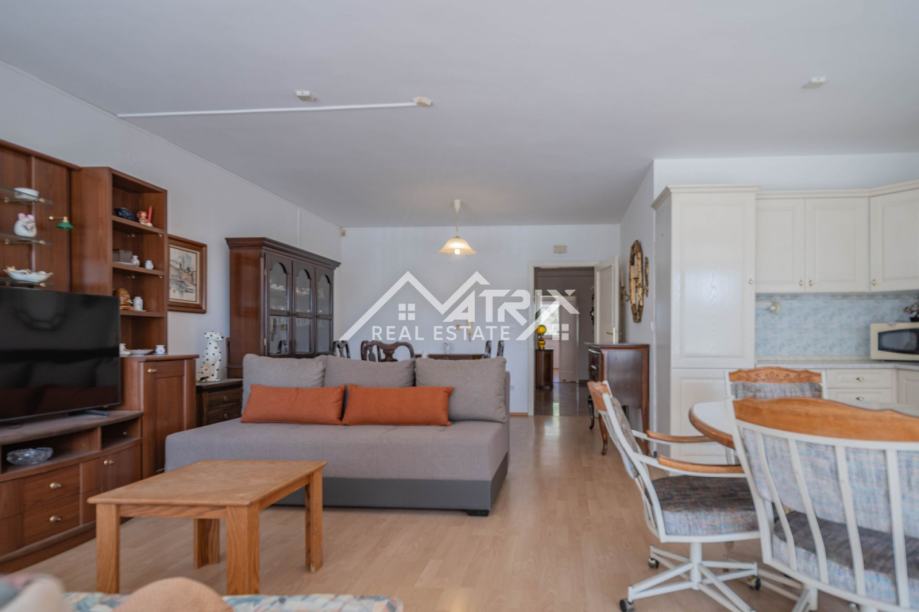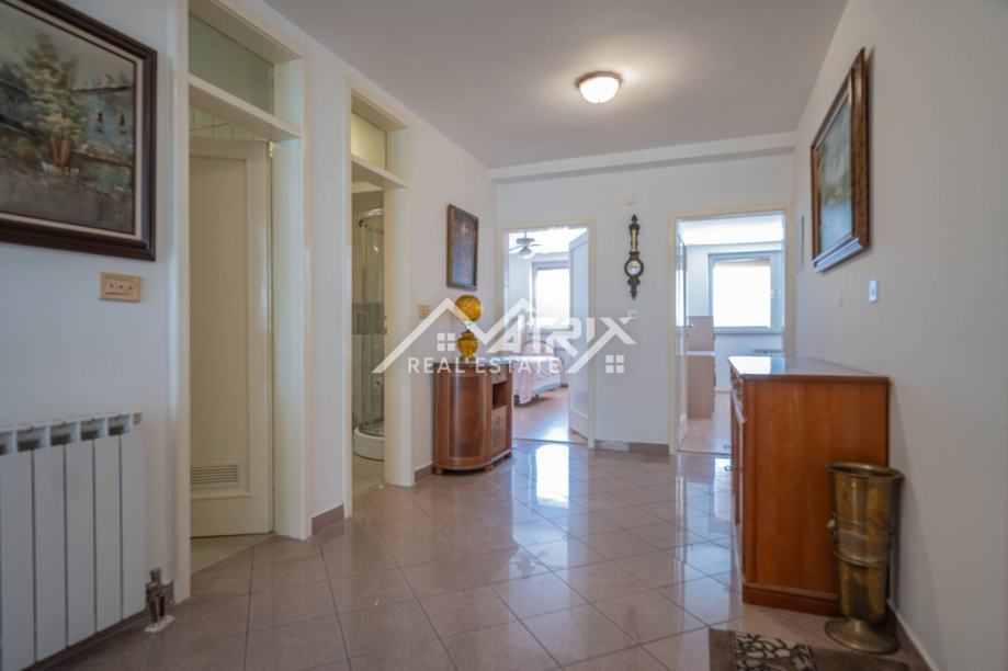 Na prvom katu manje stambene zgrade u jednom od najpoželjnijih pulskih naselja, Vidikovcu, nudi se prostrani stan, potpuno namješten i spreman za useljenje. S ukupnom površinom od 108,95 m², stan raspolaže dvjema velikim spavaćim sobama, kupaonicom i dodatnim WC-om, prostranim dnevnim boravkom, kuhinjom s blagovaonicom, praktičnom ostavom koja se po želji može prenamijeniti u vešeraj, te balkonom koji donosi obilje svjetlosti i ugodnu atmosferu.