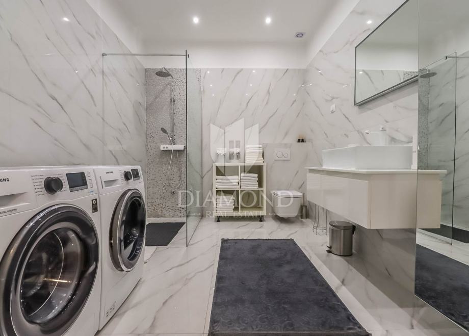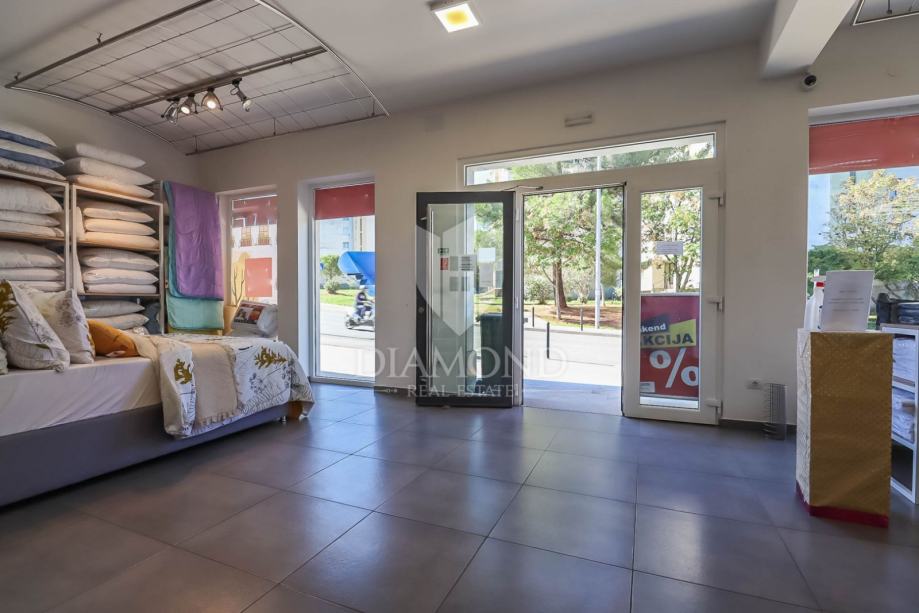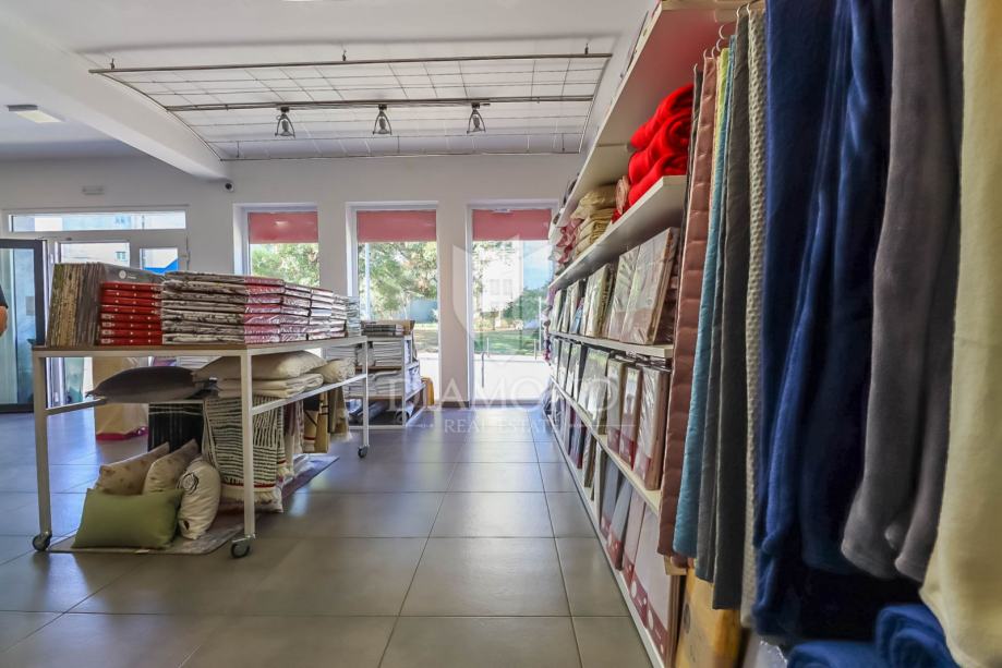 Ova nekretnina u principu jest spoj više prostora i proteže se na suteren i prizemlje ukupne kvadrature od 294m2 od kojih 19m2 pripada garaži u sklopu okućnice. U suterenu se nalazi pomoćni prostor a prema ideji sadašnjih vlasnika u nastanku je konoba koja bi služila za druženje s prijateljima i obitelji. U prizemlju se nalazi odličan i prostrani poslovni prostor, površine cca 85m2, orijentiran sa velikim izlozima prema frekventnoj ulici što osigurava da se proizvodi lako uoče te sam prostor bude dostupan za buduće kupce. U nastavku prizemlja se nalazi stan koji je orijentiran prema mirnom stambenom djelu i mirnoj ulici. Sastoji se od manjeg ulaznog hodnika, dnevnog boravka koji se spojen sa kuhinjom i blagovaonicom, dvije spavaće sobe , kupaonicom i gostinjskim wc-om. Iz dnevnog boravka pruža se Pogled na Pulu.