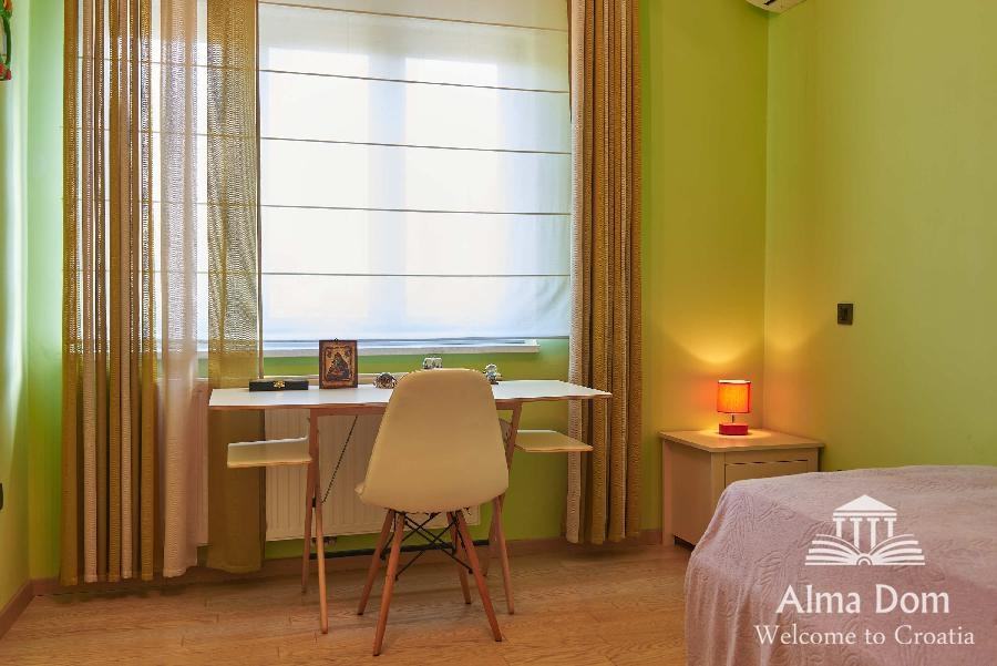 Kad se ulazi sa hodnika dolazimo u okrugli veliki dnevni boravak sa tri spavaće sobe, svaka sa svojom zasebnom kupaonicom. Dvije spavaće sobe imaju pogled na more.