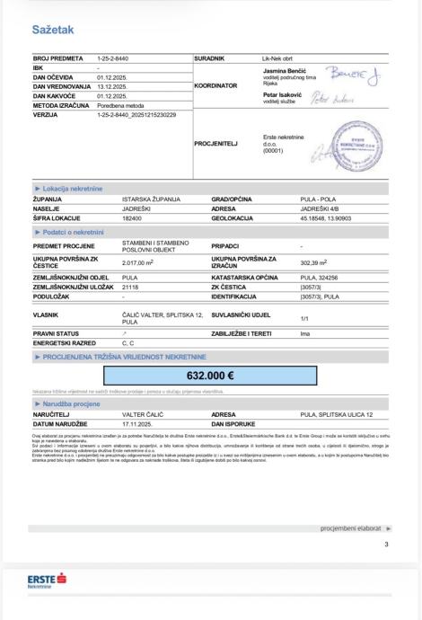 Odlična investicija s minimalnim ulaganjima. Jedna je obiteljska kuća od 220m2 katnica (4a), od čega je gornji stan namješten, a donji je za adaptaciju prazan. Stražnja nekretnina 4b - 147m2 je stambeno poslovne namjene koja je u najmu. Ima opremljenu mehaničarsku radionu i ured u prizemlju, te aparman na katu i ploču za nadogradnju. Straži dio je strojarnica. Zemljište je na glavnoj cesti odmah do autobusne stanice i mini marketa, te nasuprot škole Jadreški. Procjenjena vrijednost je 632.000€ i odlična je pozicija svega 5 min od City Mall-a, Medulina, Ližnjana, Zračne luke Pula i Istarskog ipsilona.