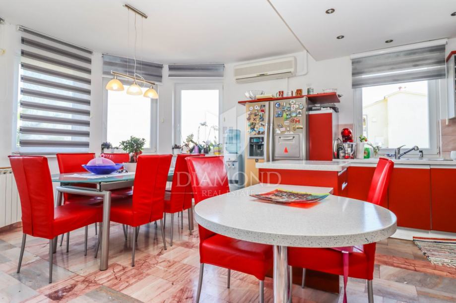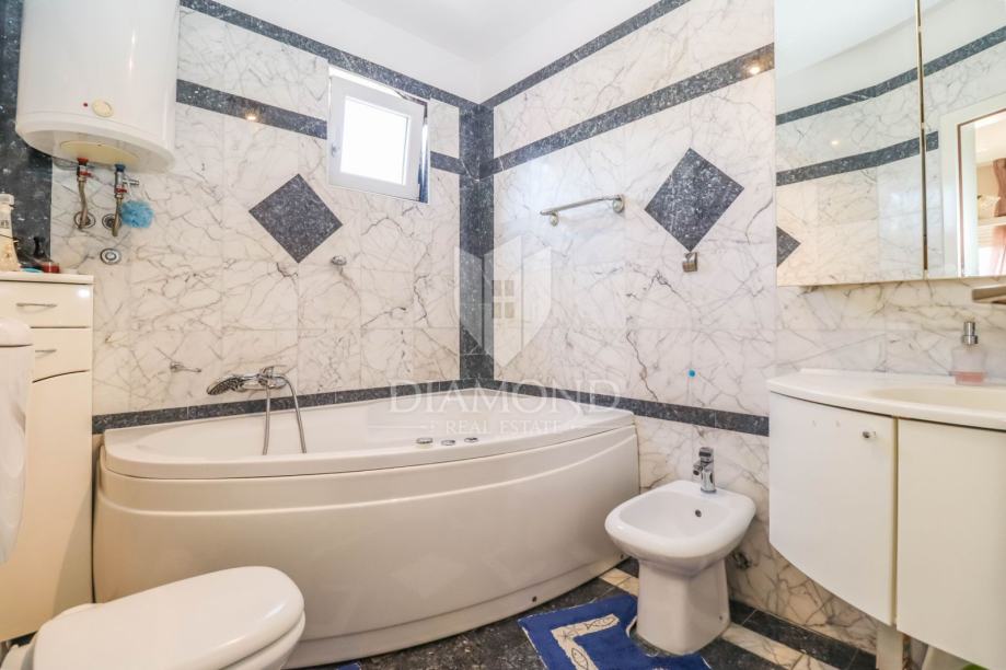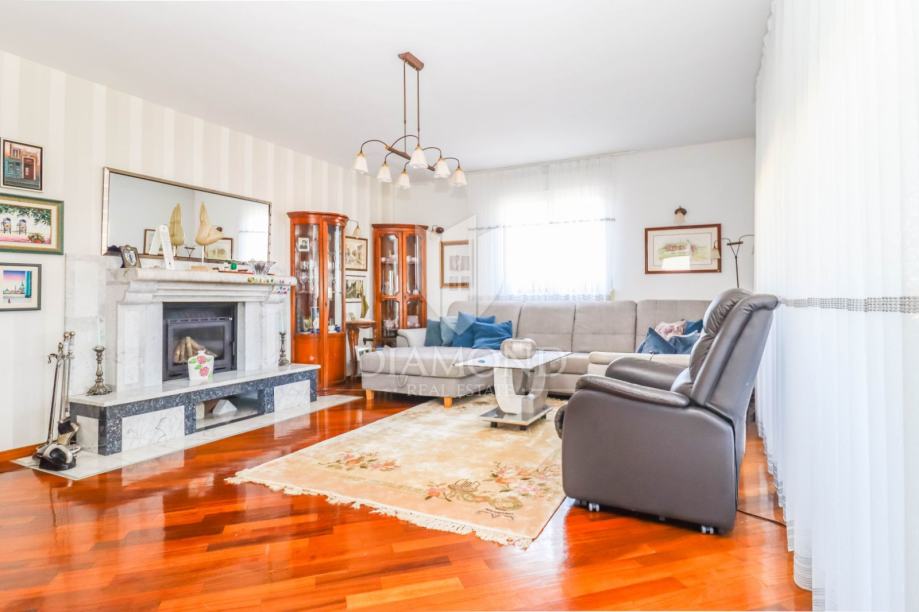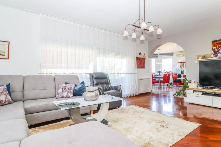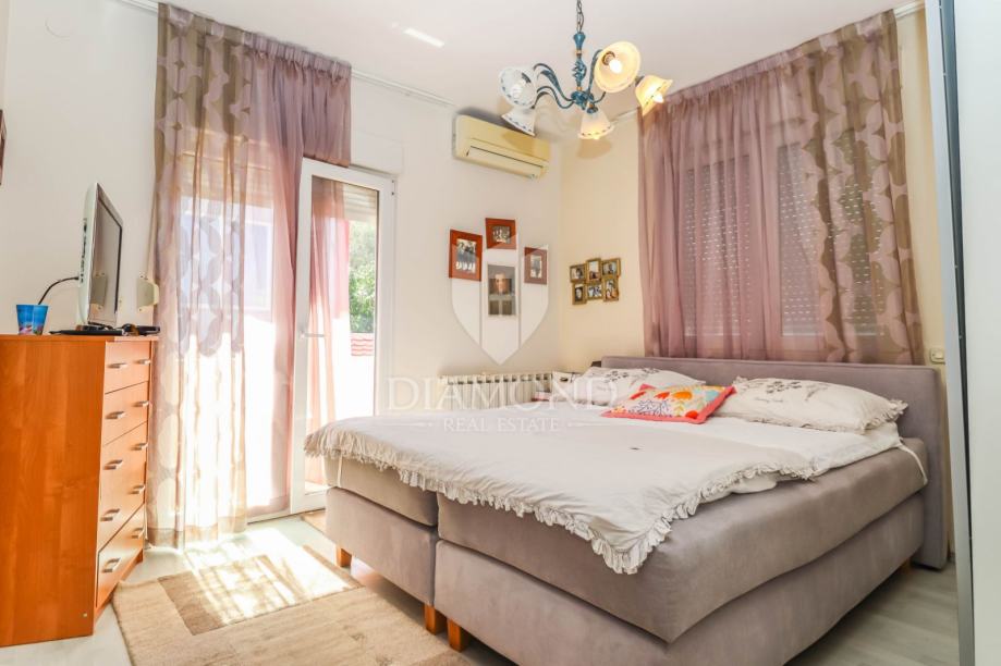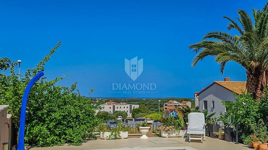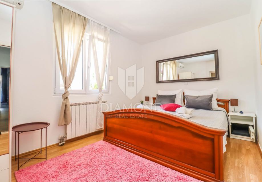 Ova atraktivna kuća nudi višestruke mogućnosti. Izvrsna lokacija, u blizini šume, škole te pet minuta vožnje do centra čine ovu kuću odličnim odabirom za miran obiteljski život, a isto tako s obzirom na moderni interijer, bazen i pogled na more nekretnina je savršena za iznajmljivanje.