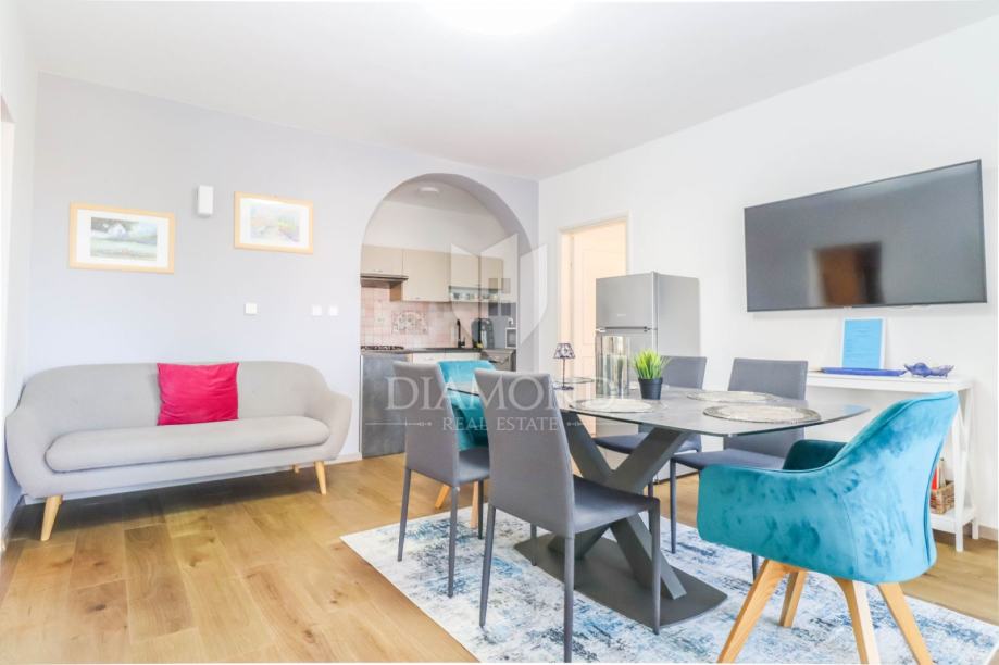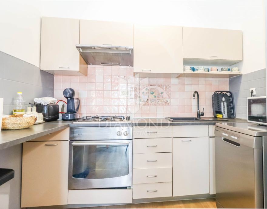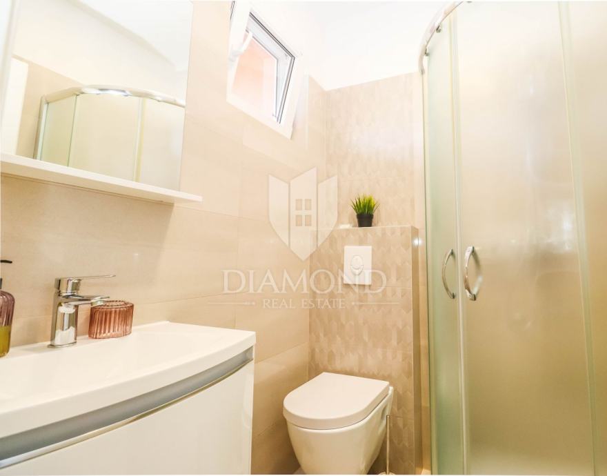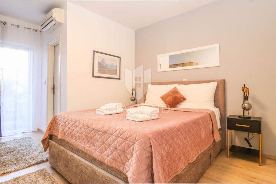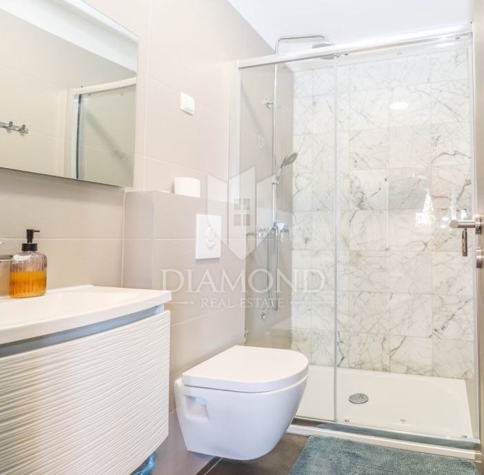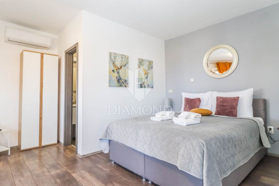 Ova atraktivna kuća nudi višestruke mogućnosti. Izvrsna lokacija, u blizini šume, škole te pet minuta vožnje do centra čine ovu kuću odličnim odabirom za miran obiteljski život, a isto tako s obzirom na moderni interijer, bazen i pogled na more nekretnina je savršena za iznajmljivanje.