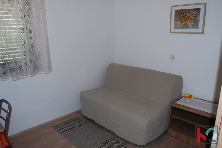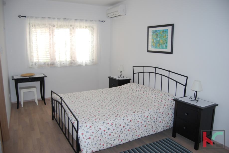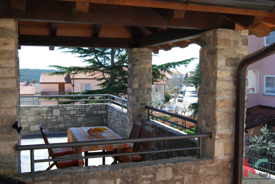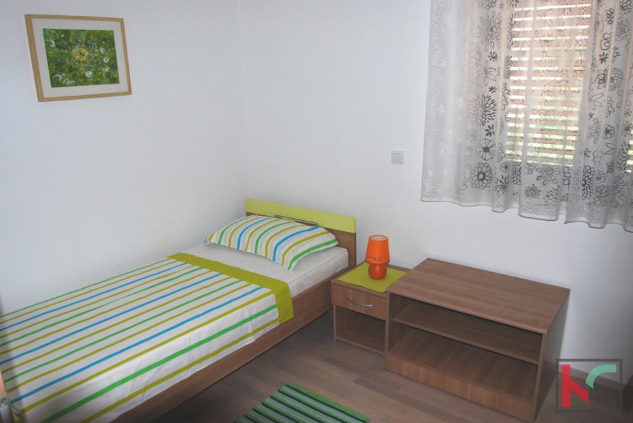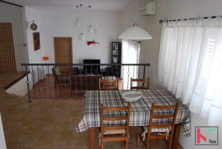 Na prvom katu nalazi se prostran stan s četiri udobne spavaće sobe, kuhinjom, blagovaonicom, dnevnim boravkom te WC-om i kupaonicom. Velika terasa pruža pogled na okolni krajolik, stvarajući savršeni prostor za opuštanje.