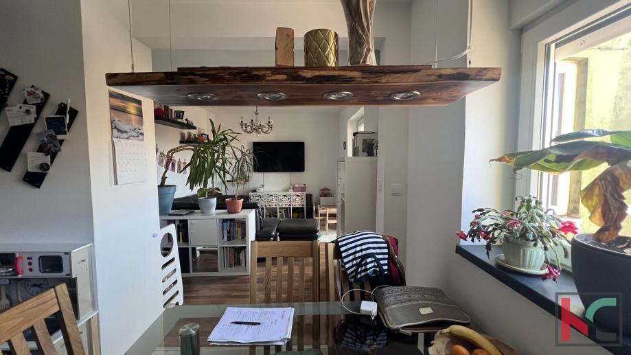 Nekretnina obuhvaća komotno ulazno predsoblje iz kojeg se ulazi u sve prostorije, kupaonica, kuhinja s blagovaonom u komunikaciji s dnevnim boravkom i izlaz na osunčanu loggiu, smočnica i spavaća soba.