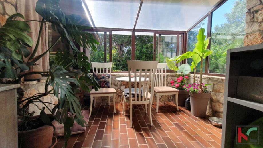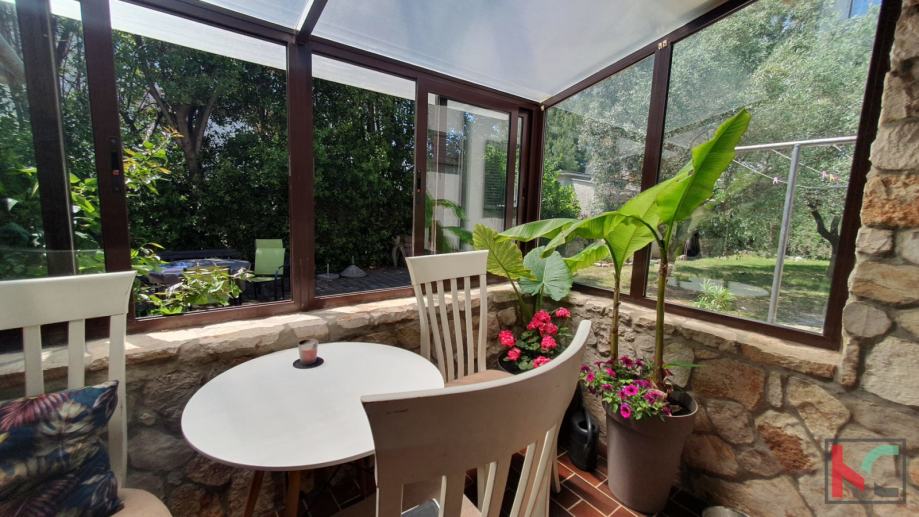 Nekretnini pripada i mala vrtna kućica, vanjski roštilj, veliki dio dvorišta sa starim maslinama i održavanim travnjakom te dio za ljetni dnevni odmor i bijeg od ljetnih vrućina u hladovinu ovog zelenila.