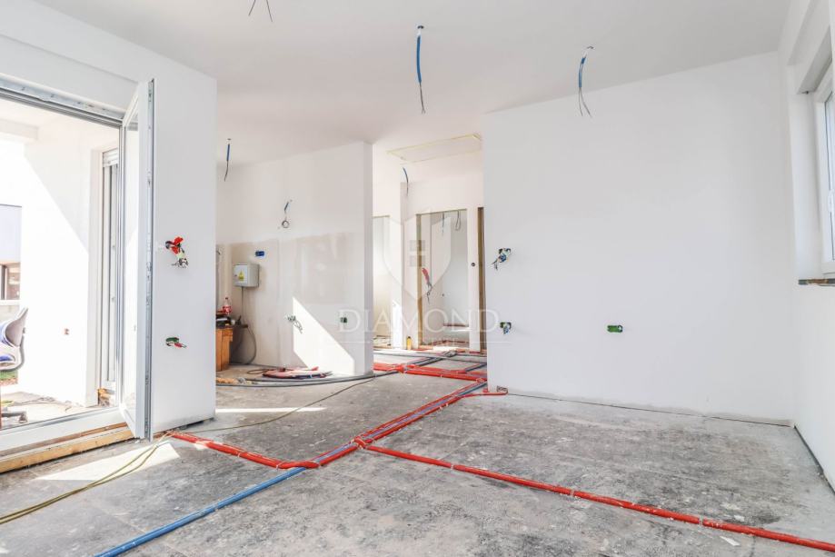 U ponudi je kuća površine 90 m² u visokom roh-bau, što znači da je objekt već u fazi koja omogućuje da završne radove i stil interijera prilagodite vlastitim željama. Kuća je svijetla, prozračna i funkcionalno zamišljena, s velikim staklenim otvorima koji prostoru daju puno dnevnog svjetla. Okućnica pruža dodatnu vrijednost, prostor za terasu, vrt, dječje igralište, roštilj zonu ili jednostavno mirno uživanje na otvorenom. Ovo je idealna prilika za kupce koji žele noviji objekt bez kompromisa i žele završnu fazu napraviti kvalitetno i po vlastitom ukusu, umjesto da plaćaju tuđi stil.