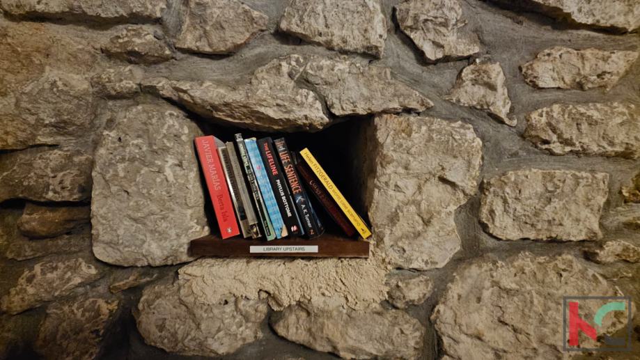 Kuća je preuređena u vrlo autentičnom istarskom stilu, sa puno kamena i drva, sa velikom okućnicom i još dva dodatna apartmana. Kuća je kategorizirana i služi za turistički najam. Grijani bazen veličine 8x7m, koji se nalazi podno kamenog grebena, pruža nam užitak i tišinu koju rijetko koja nekretnina može nadmašiti.