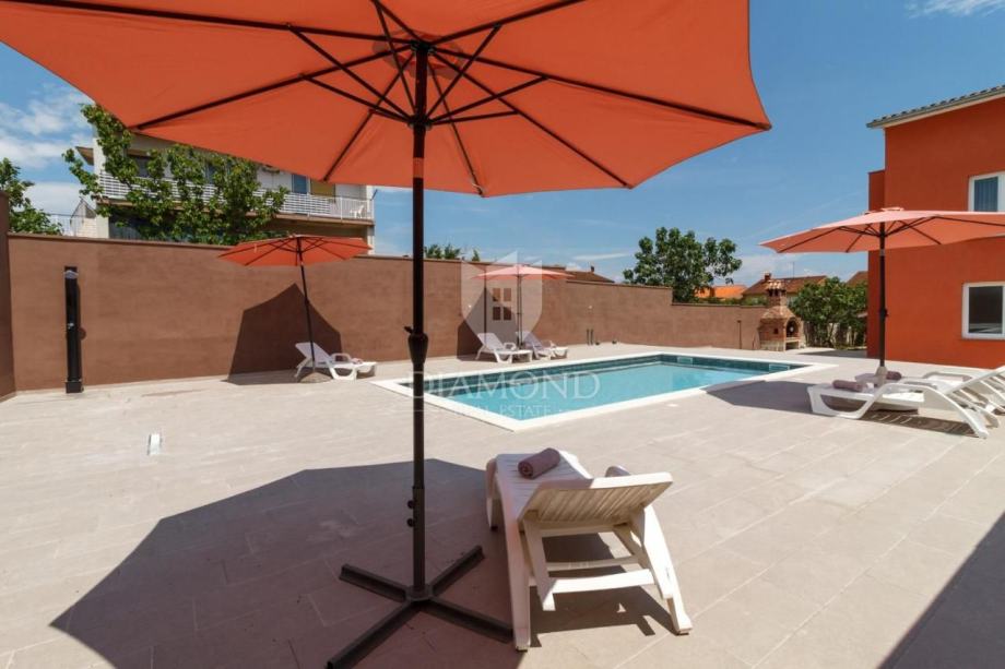Kuća se sastoji od 8 apartmana, na 3 kata i ima bazen u dvorištu.