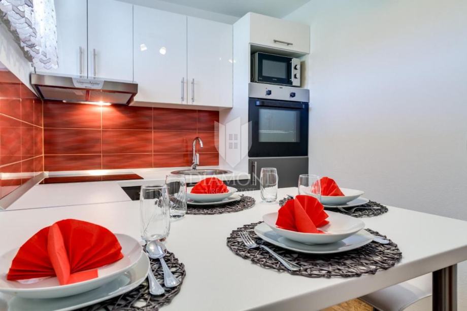 Na prvom i drugom katu se nalaze po 3 apartmana a na zadnjem katu još dva. Na zadnjoj etaži je i prostor u visokoj roh-bau fazi.