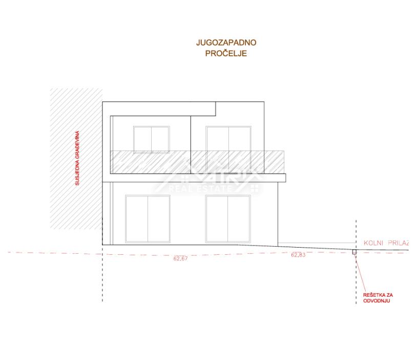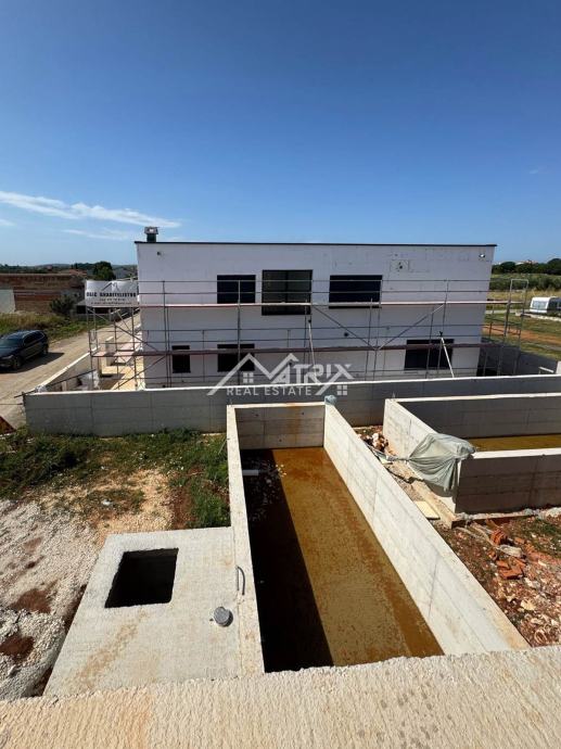 Na prodaju je suvremena dvojna kuća ukupne površine 141,26 m², smještena na uređenoj parceli veličine 283 m² u mirnom dijelu Pule, idealnom za život ili kao investiciju za turistički najam. Objekt je trenutno u roh-bau fazi, što budućem vlasniku omogućuje potpunu slobodu pri odabiru završnih materijala i opreme prema vlastitim željama.