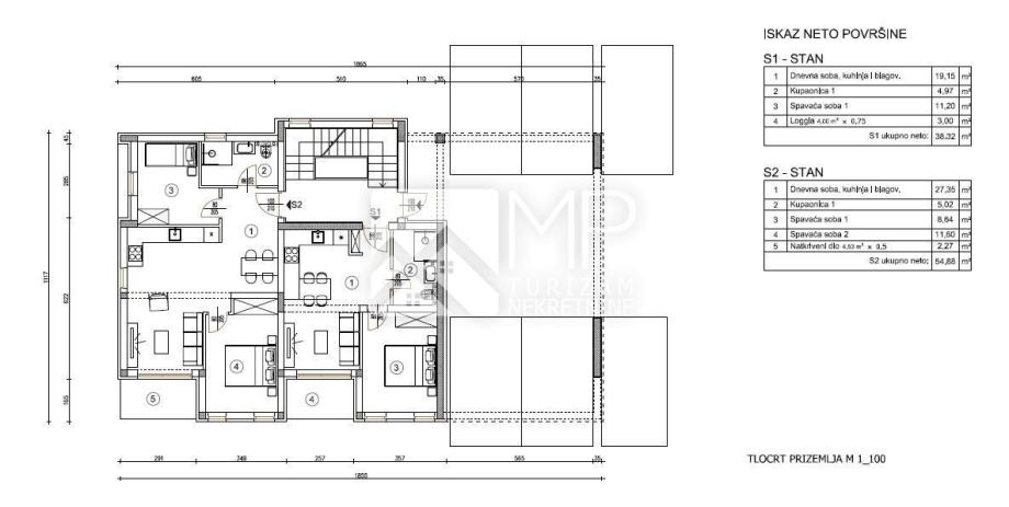 STAN S1 – prizemlje, ukupne neto kvadrature 38,32 m2.