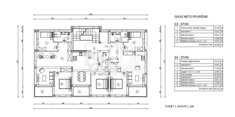 STAN S4 – I. KAT, ukupne neto kvadrature 93,10 m2.