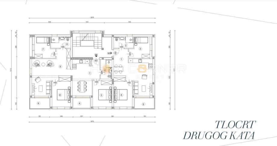 Predlažemo prostrani penthouse smješten na 2. katu zgrade, orijentiran južno i zapadno, površine 93 m2 + dva vanjska parkirna mjesta.