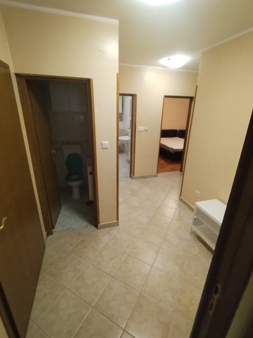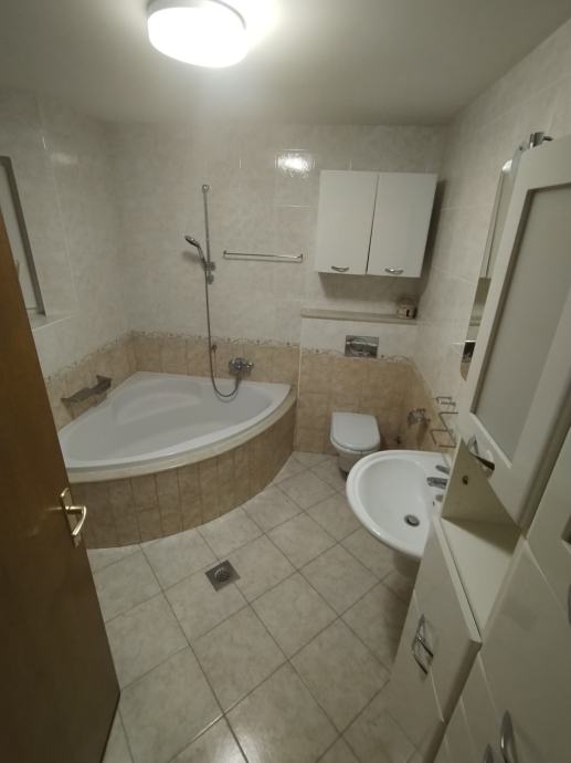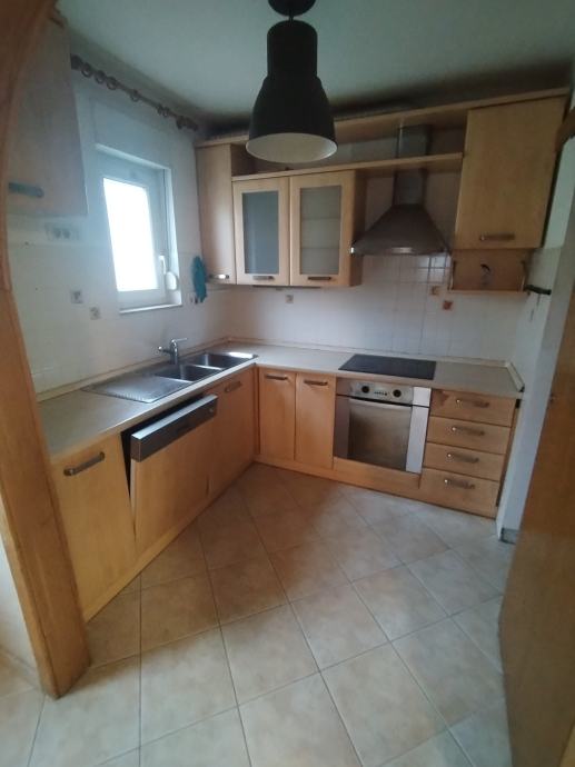 Stan za dugoročni najam, komforan dvosobni, oko 70 m2, 2 zatvorene terase, galerija, komotno kupatilo, odvojen wc, garaža + 1 mjesto ispred, dostupno cijele godine, najamnina 650 eura fiksno