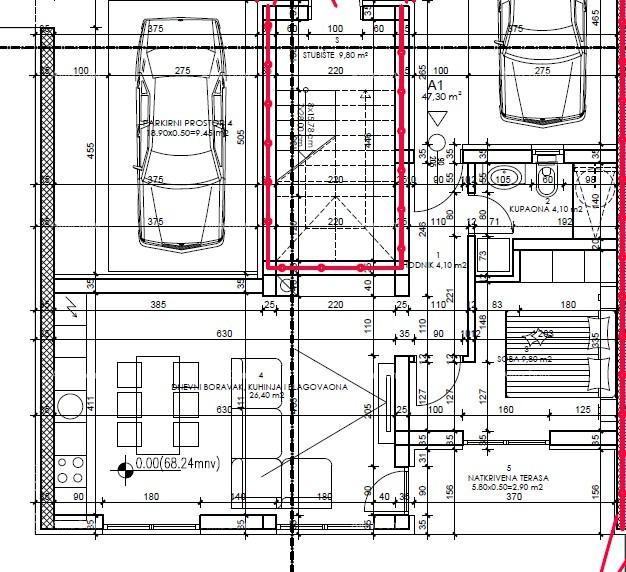 Stan A1 nalazi se u prizemlju zgrade A te se sastoji od hodnika, kupaonice, spavaće sobe i kuhinje s blagovaonicom i dnevnim boravkom, koji imaju izlaz na prostranu terasu – savršenu za uživanje u miru i privatnosti te dio vrta od cca 50 m2.