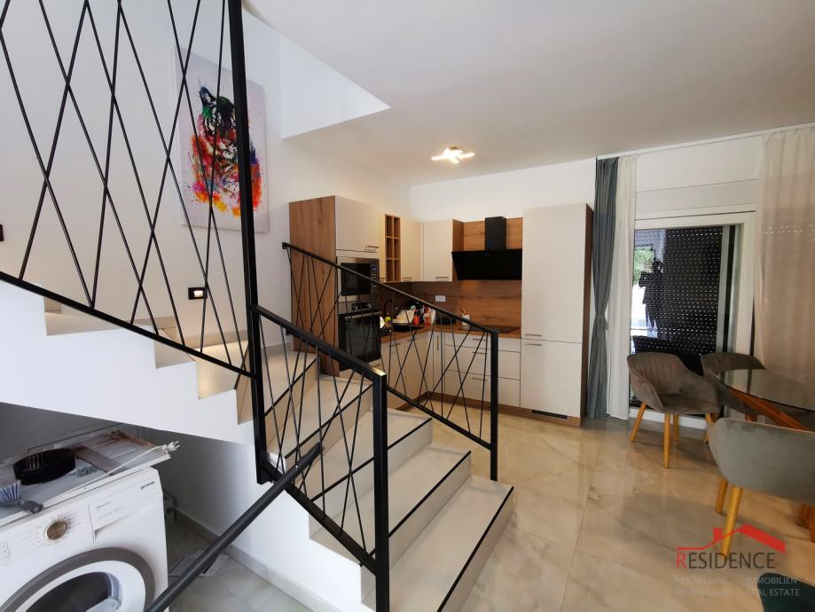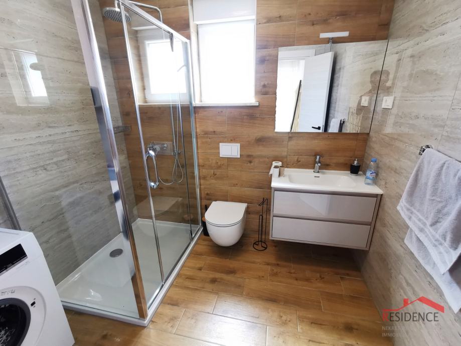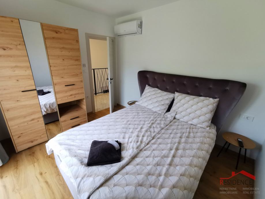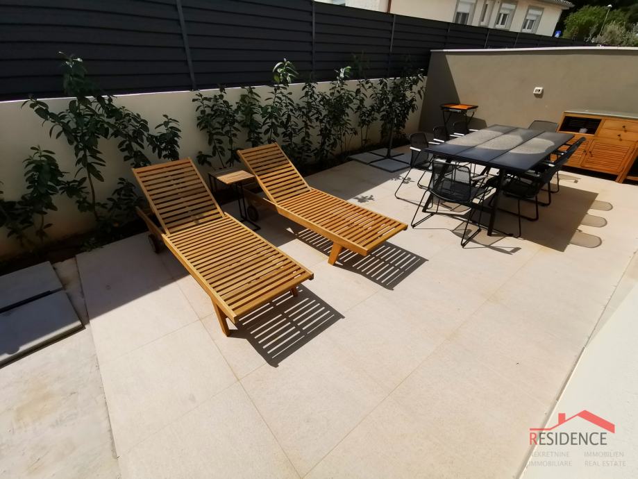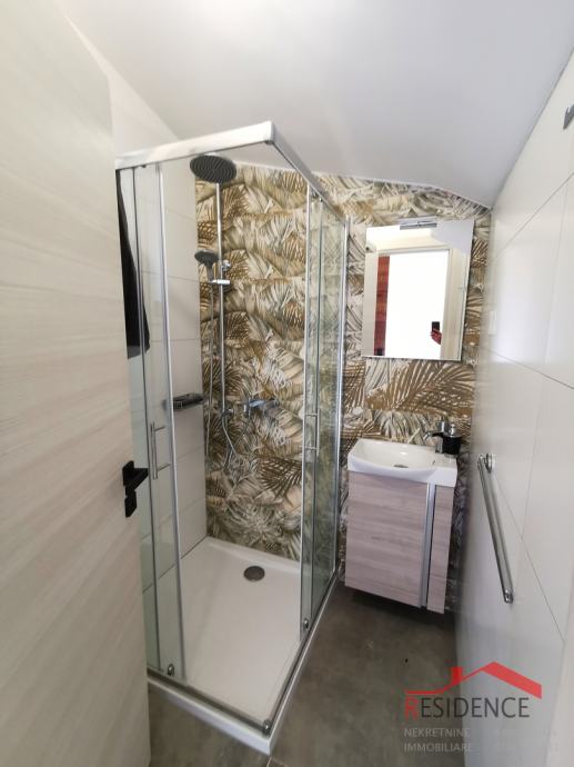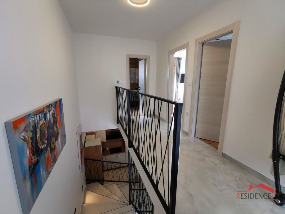Prodaje se nova dvojna kuća sa jacuzzijem nedaleko od centra Pule u rezidencijalnom dijelu naselja. Kuća je veličine 80 m2 na dvije etaže. U prizemlju se nalazi dnevni boravak sa kuhinjom i blagovaonicom, 1 spavaća soba i kupaonica. Iz dnevnog boravka se izlazi u vrt veličine 50 m2 gdje se nalazi jacuzzi te lijepo uređeni dio za boravak na otvorenom. U prizemlju se nalaze stepenice koje vode na kat kuće na kojem su 2 spavaće sobe i kupaonica. Kuća je kvalitetno građena i kompletno namještena. Prostorije su klimatizirane, a u kupaonicama je podno grijanje.
