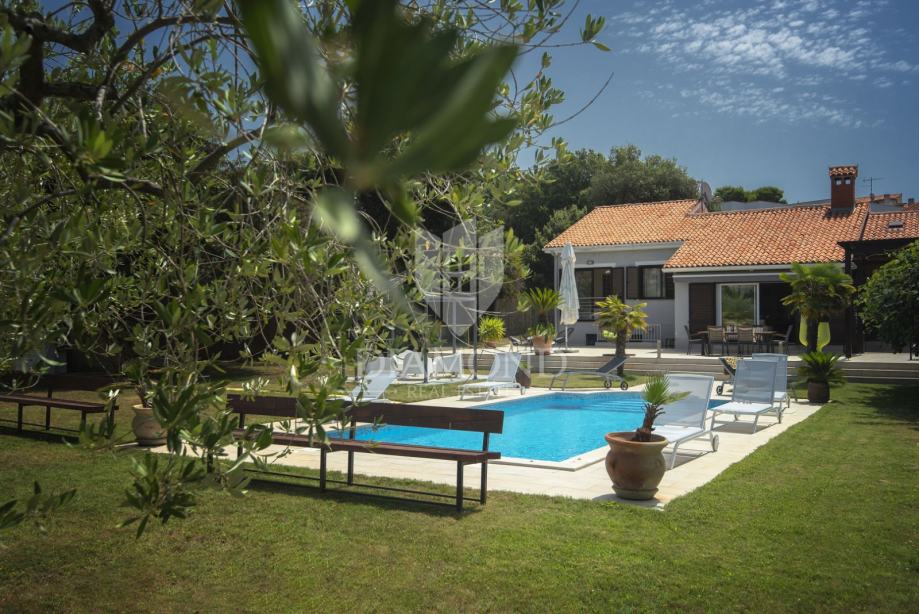 Ova kuća sastoji se od dvije stambene jedinice, manjeg studio apartmana sa izlazom na terasu i okućnicu i drugog većeg stana u kojem se nalazi open space prostor u kojem se nalazi kuhinja sa blagovaonicom te dnevni boravak koji vodi na terasu i okućnicu gdje se nalazi bazen i sunčalište te vanjski wc. U sklopu stana nalaze se i dvije spavaće sobe i dvije kupaonice. Prednji dio okućnice rezerviran je za parkirna mjesta. Ova kuća je posljednja u nizu ali privatnost i intima osigurani su time što je cijeli posjed ograđen visokim zidom i zelenilom.
