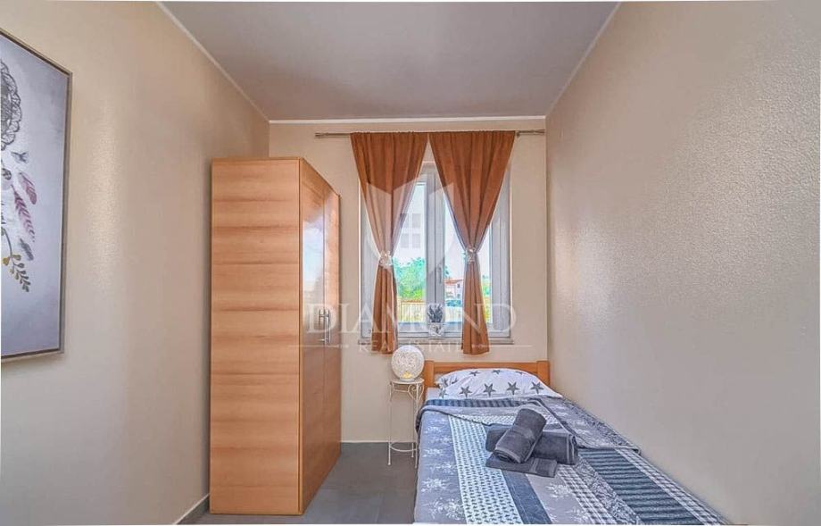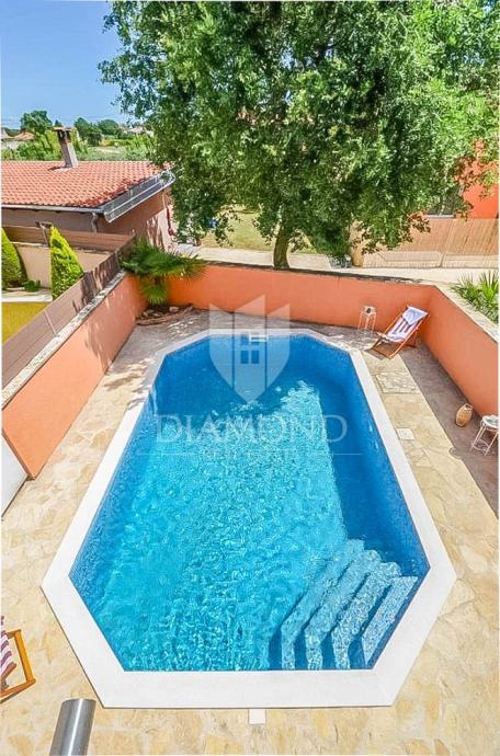 Kuća prostire se na površini od 150m2, pružajući obilje prostora za udoban boravak. Na prizemlju se nalazi jedna prostrana spavaća soba, moderna kupaonica i prostrani otvoreni prostor koji uključuje kuhinju, dnevni boravak i blagovaonicu. Iz ovog prostora imate izravan pristup terasi s prekrasnim bazenom, idealnom za osvježenje u vrućim ljetnim danima. Na katu se nalazi kupaonica te još tri udobne spavaće sobe, od kojih dvije imaju izlaz na balkon. Ovdje možete uživati u prekrasnom pogledu na okolni krajolik i opuštati se na svježem zraku.