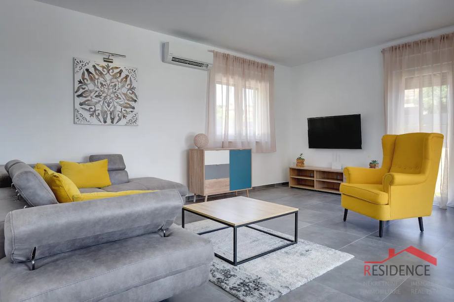 Kuća je kompletno namještena te se takva i prodaje. Klimatizirana. Grijanje i hlađenje na klimu, drva.