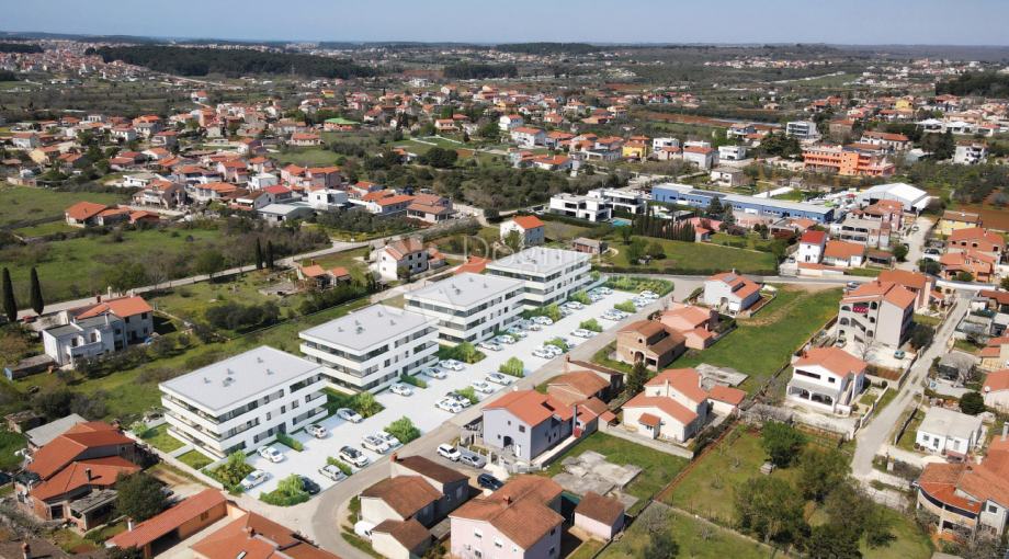 U već navedenom naselju, smjestio se ovaj novi projekt visokokvalitetne novogradnje! Projekt će se sastojati od ukupno 4 zgrade, od kojih će tri biti s po 15 stambenih jedinica te zadnja, četvrta, s 13 stambenih jedinica. Projektiranje, dizajn i arhitekturu potpisuje najveći projektantski studio u Puli koji djeluje i puno šire te ih krasi mnoštvo izvanrednih projekata! Koncept zgrada osmišljen je kao moderne dvokatnice sastavljene od stanova u prizemlju s dijelom dvorišta te stanovima na 1. i 2. katu s prostranim terasama.