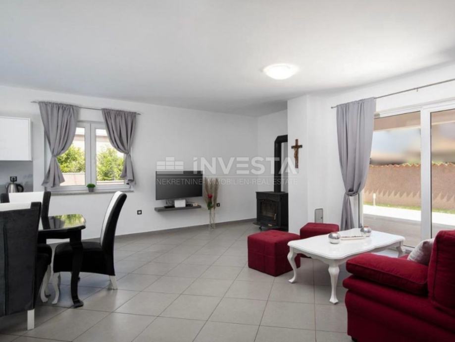 Prizemlje se sastoji od ulaznog hodnika, gostinskog WC-a, ostave, opremljene kuhinje te prostranog dnevnog boravka s izlazom na natkrivenu terasu i dvorište. Unutarnjim stepenicama dolazi se na prvi kat, gdje se nalaze tri prostrane spavaće sobe i dvije kupaonice. Jedna od spavaćih soba ima vlastitu kupaonicu i izlaz na terasu s pogledom na prirodu.