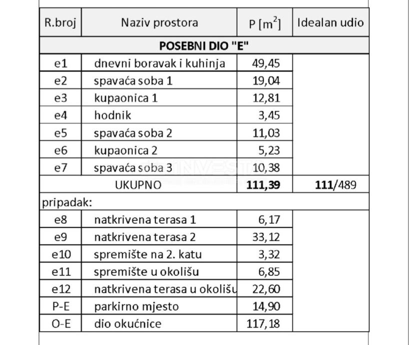 Ukupna podna površina cijele nekretnine iznosi 457,88 m², dok je neto korisna površina 263,43 m².