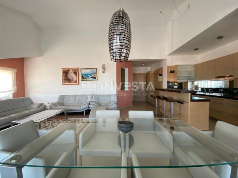 Na jednoj od najatraktivnijih lokacija u Puli, u Pješčanoj Uvali, svega 200 metara od mora i uređenih plaža, prodaje se prostrani penthouse s pripadajućim suterenskim prostorom za wellness i druženje, vrtom s ljetnom kuhinjom i privatnim parkirnim mjestima.