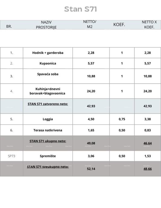 Stanu pripada spremište od 3.06 m2 i parking mjesto koji se plaćaju dodatno.