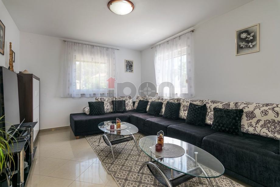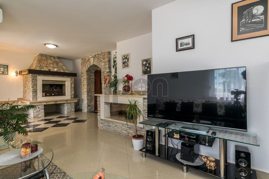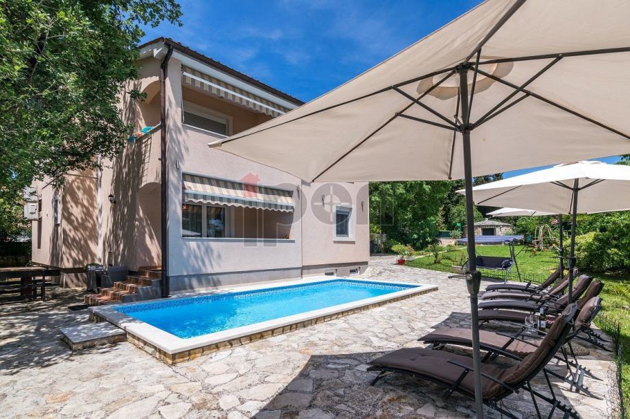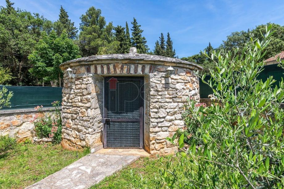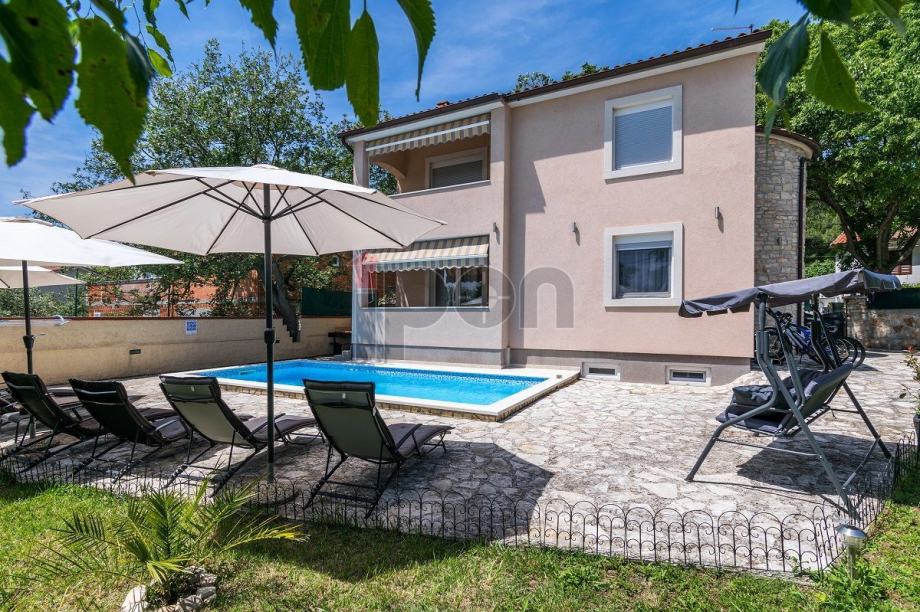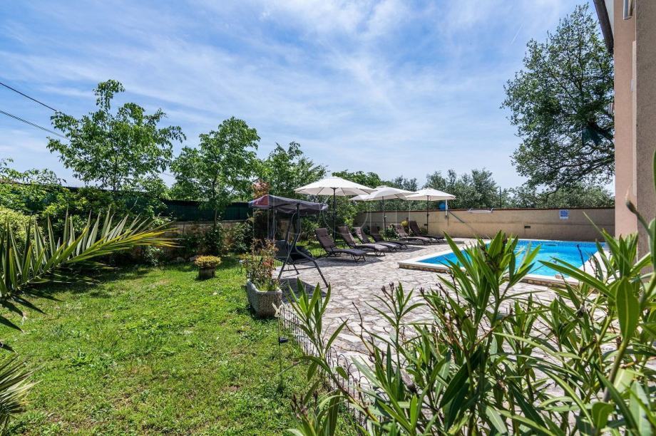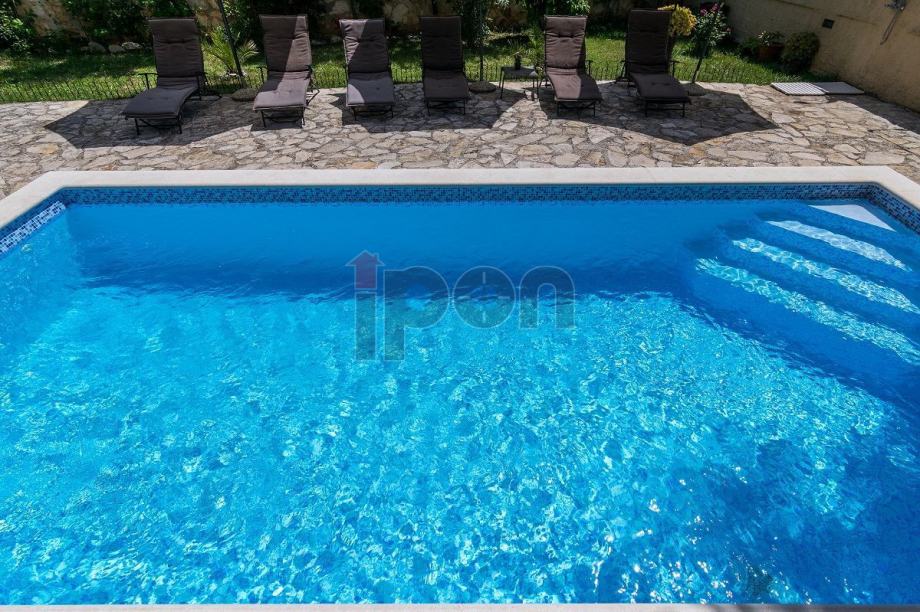 Kuća je potpuno opremljena i klimatizirana sa šest klima uređaja. Dvorište je potpuno ograđeno i uređeno, a na njemu se bazen 28m2 koji obećava ugodno osvježenje u ljetnim mjesecima, kameni roštilj, travnjak, te kamenu kućicu koja služi kao spremište za ležaljke za bazen, bicikle, i slično.