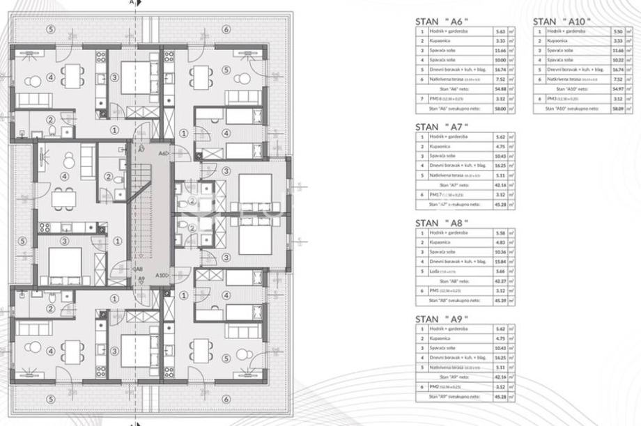 Šikići, prodaje se stan u modernoj novogradnji. Stan "A10" nalazi se na prvom katu stambene zgrade. Sastoji se od ulaznog hodnika i garderobe, kupaonice, dvije spavaće sobe, dnevnog boravka, kuhinje i blagovaonice i natkrivene terase ukupne zatvorene površine od 54,97 m2. Stanu pripada jedno...