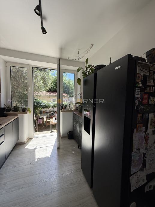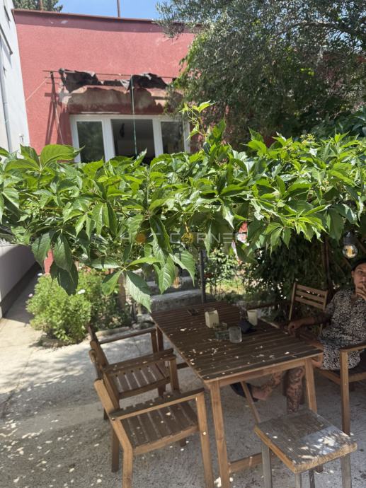 Kuća ima i vlastiti prekrasan stražnji vrt površine 240 m2, dijelom betoniran a dijelom travnat sa voćkama, u kojem se nalazi i mala legalizirana konoba površine 30 m2 koja se može urediti kao apartman za goste, kao ured ili slično. Parkirno mjesto u dvorištu kuće.