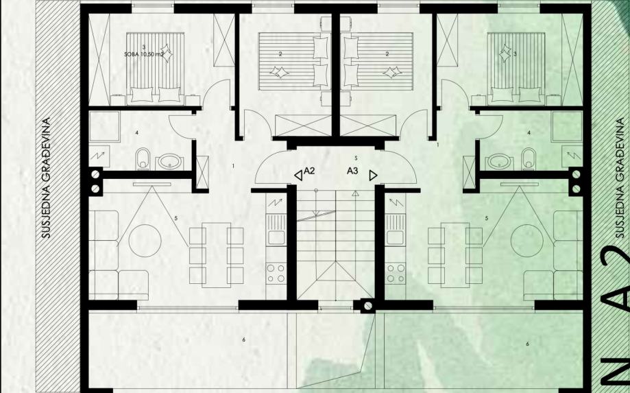 Smješten na mirnijoj lokaciji, nedaleko glavne prometnice te svega par minuta autom od strogog centra Pule, nalazi se ovaj izuzetno kvalitetni rezidencijalni projekt. Sastoji se od svega četiri stana. Jednog u prizemlju, dva na prvom katu te penthouse-a koji se proteže cijelom dužinom drugog...