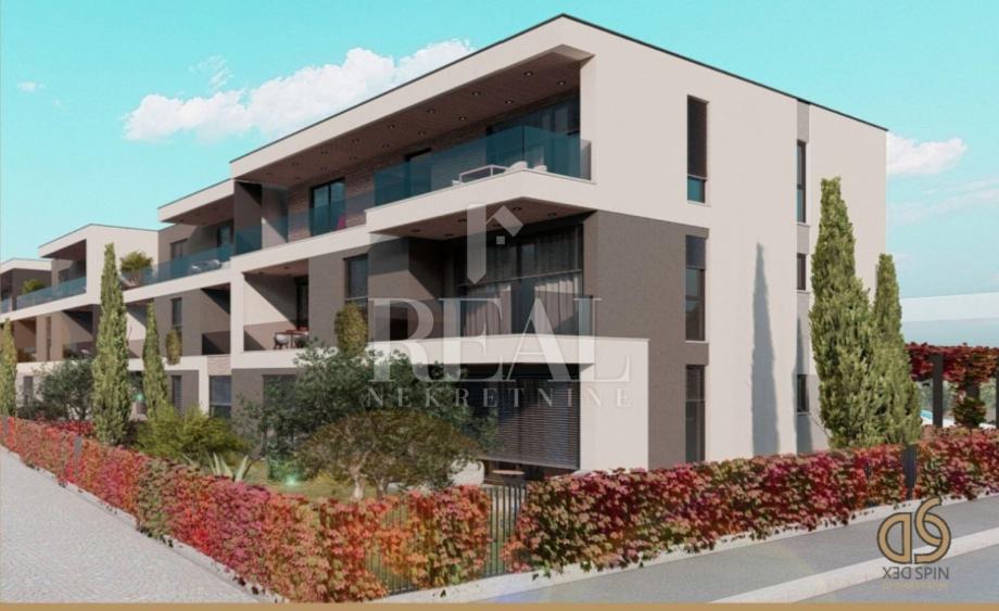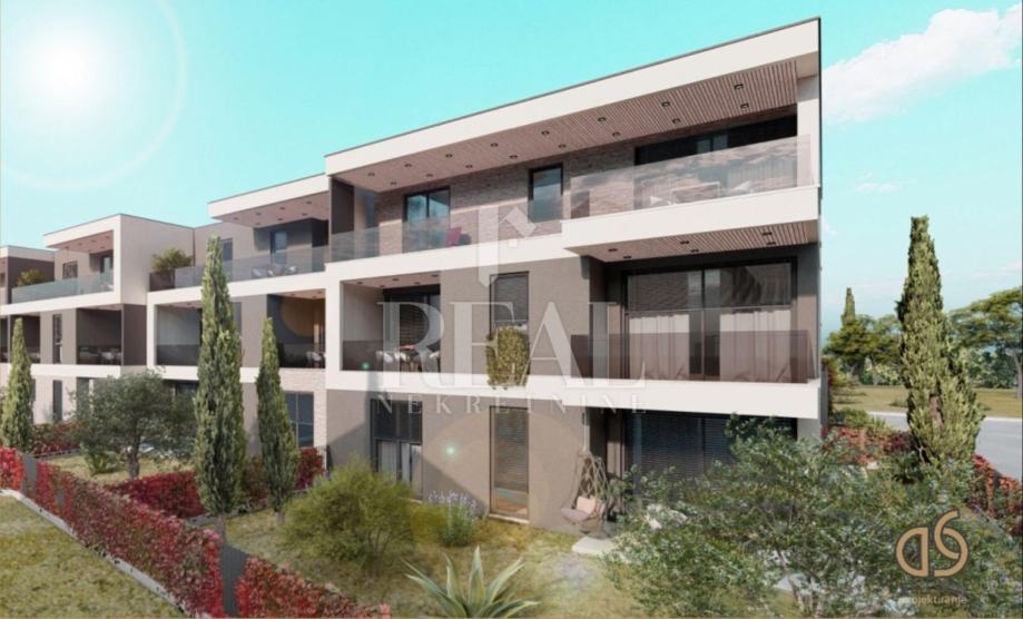 Pula novi stan u izgradnji u manjoj zgradi sa svega 4 stana. Stan se nalazi na 1. katu te ima ukupno 54m2 stambenog prostora ali mu pripada ,vanjsko spremište te parking pa će u vlasništvu imati 60m2.