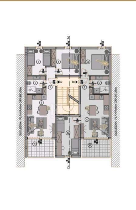 Sastoji se od kuhinje i dnevnog dijela, kupaonice, dvije spavaće sobe, i terase orijentirane prema jugu. Zgrada je trenutno u gradnji a završetak se očekuje na proljeće 2025 godine.