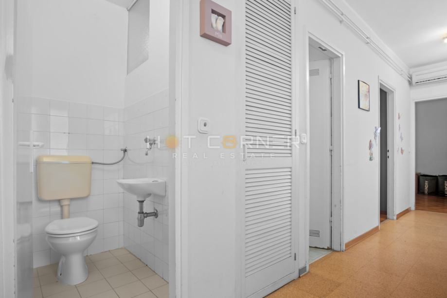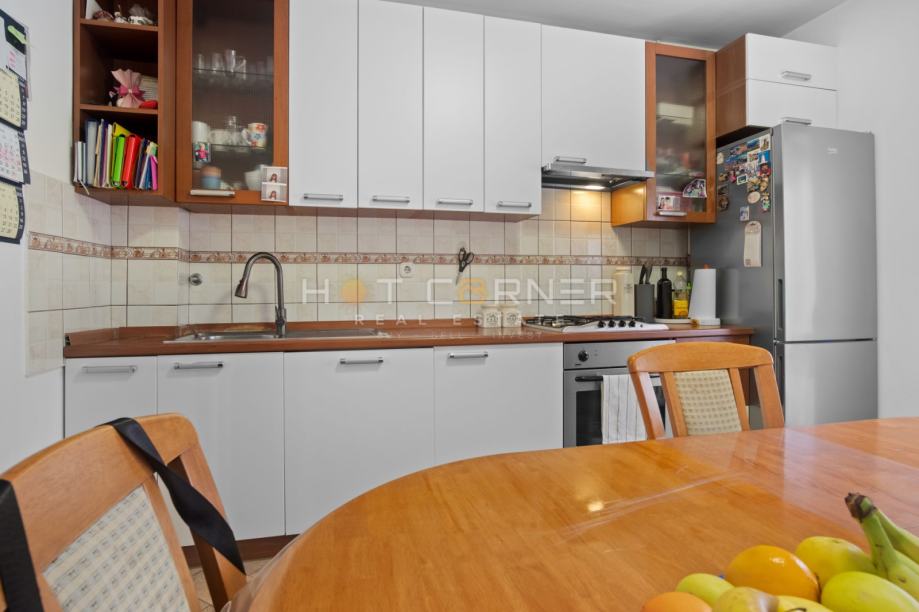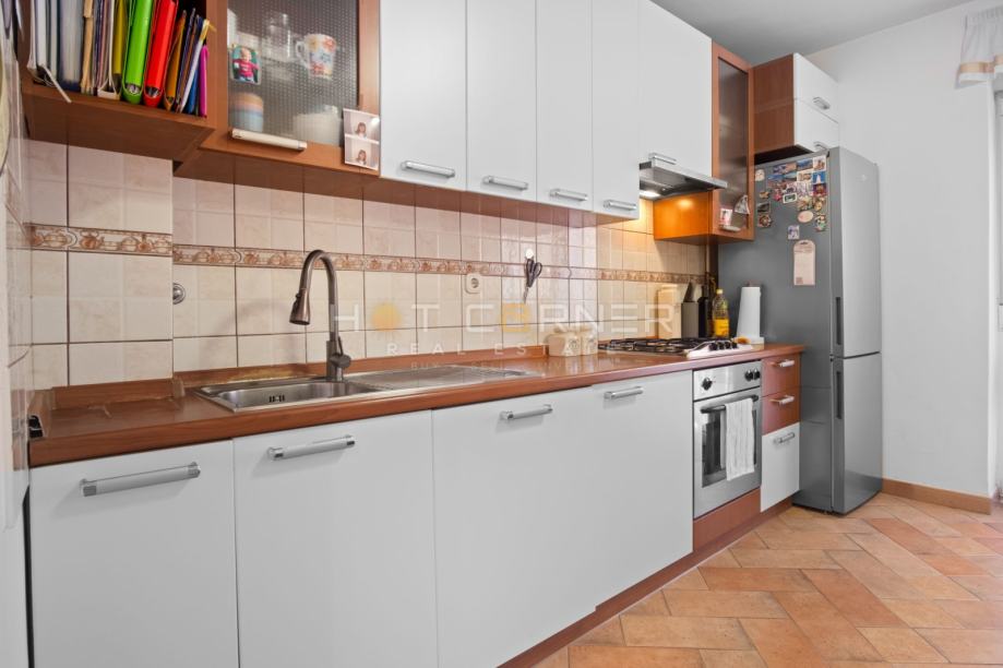 Na prodaju u Puli prostran stan s dvije spavaće sobe. Stan se nalazi na 1 katu stambene zgrade vrlo kvalitetne gradnje. Sastoji se od hodnika, kuhinje sa spremištem, dnevnog boravka, dvije spavaće sobe, hodnika, kupaonice, wc-a i lođe.