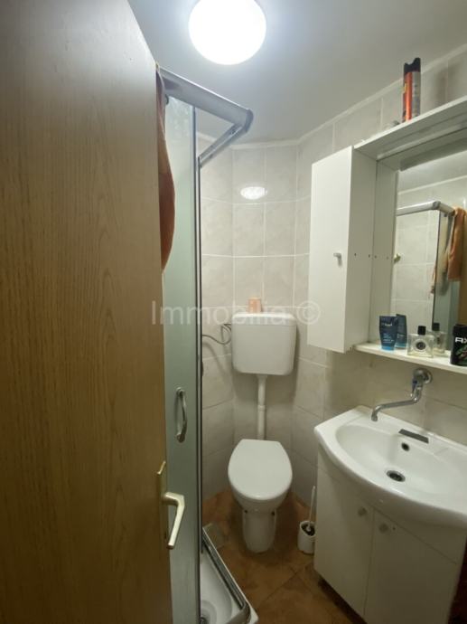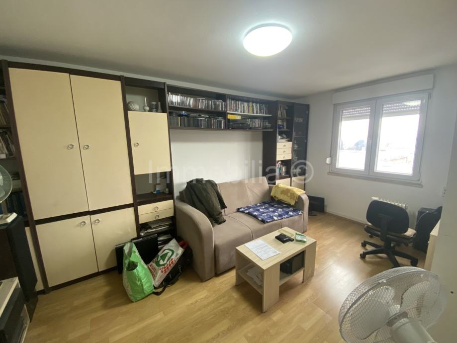 Prodaje se stan površine 27 m2, koji se nalazi u centru grada na petom, tj zadnjem katu zgrade, a sastoji od jedne sobe, kuhinje, kupaonice i hodnika. Stanu pripada i jedno spremište, a zgrada ima i osiguran parking za stanare. Stan je opremljen PVC stolarijom i klima uređajem. U blizini se nalaze i svi potrebni sadržaji.