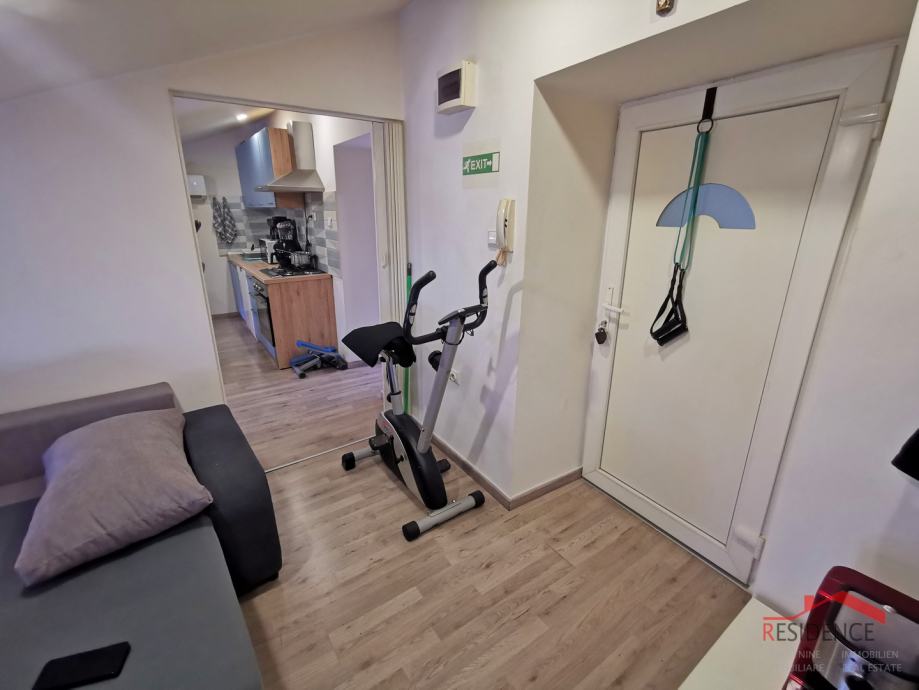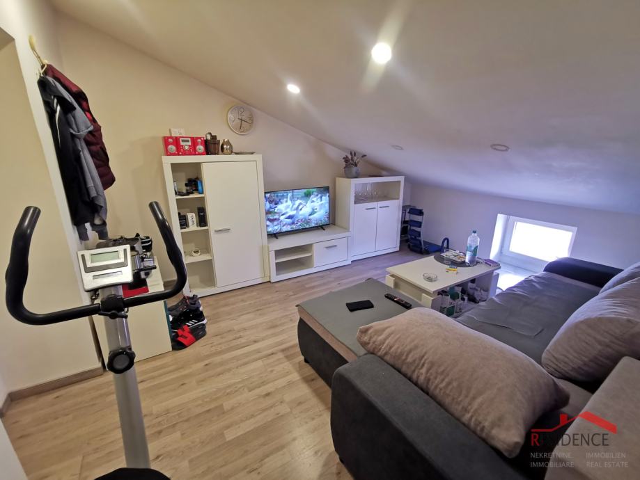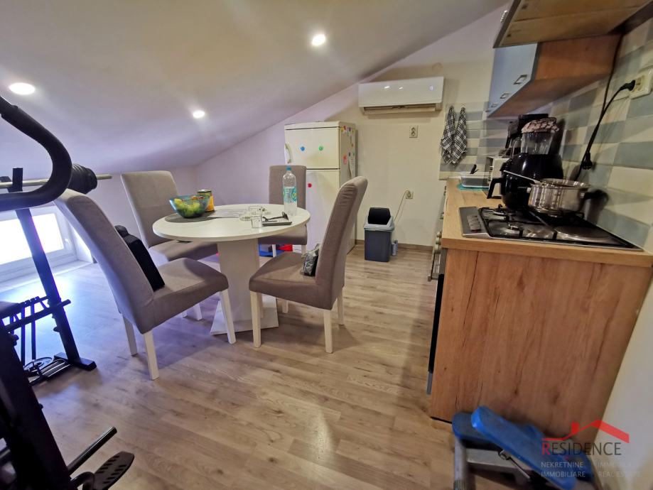 Pula, stan udaljen svega 50 metara od Arene. Nalazi se u potkrovlju manje stambene zgrade, ukupne površine 24 m2, dok u naravi ima 48 m2. Stan se sastoji od kuhinje + blagovaonice, dnevnog boravka, spavaće sobe, i kupaonice. Kompletno je adaptiran prije 2 godine (struja, voda, kupaonica i strop). Ostava na stepeništu.