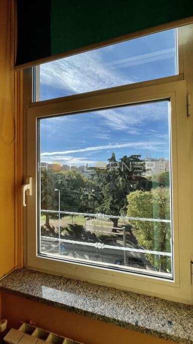 Stan se nalazi na trećem katu zgrade. Iz dnevnog boravka i jedne sobe se pruža pogled na veličanstvenu Pulsku Arenu, i park, kad prozori druge spavaće sobe i kuhinje okrenuti su prema borovoj šumi i zelenilu.