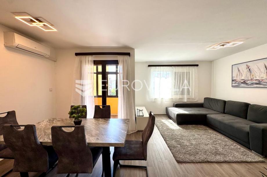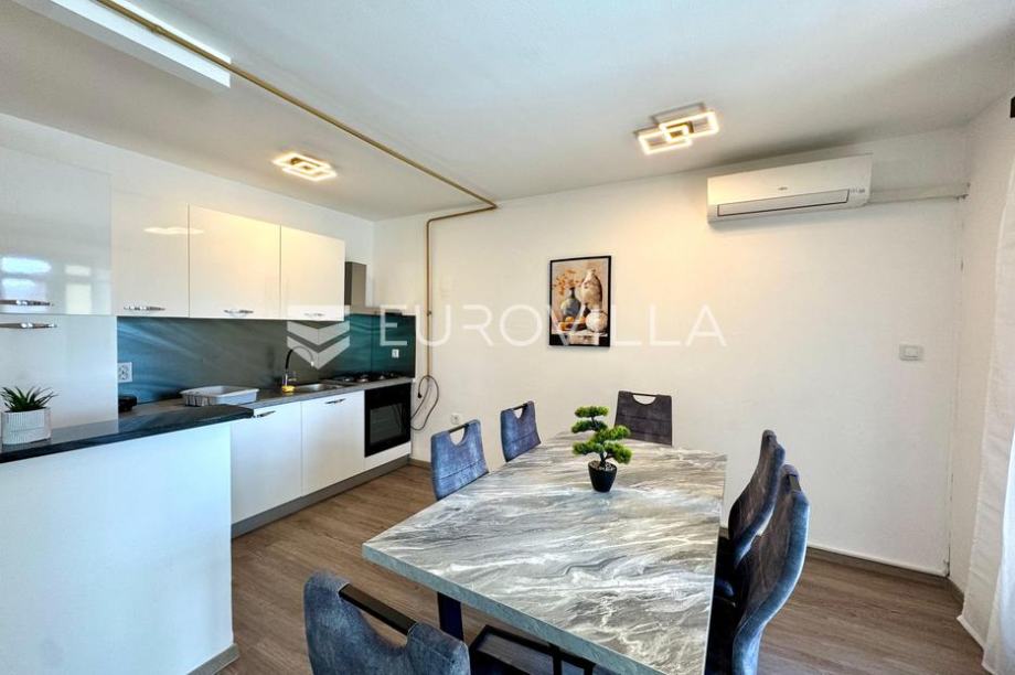 Predstavljamo u potpunosti namješten i opremljen stan smješten na samo par minuta hoda do predivnih plaža.Nalazi se na 3. katu te pruža idealan raspored koji se sastoji od ulaznog hodnika, opremljene kuhinje s blagovaonom i komotnim dnevnim boravkom smještenim u "open space" prostoru koji...