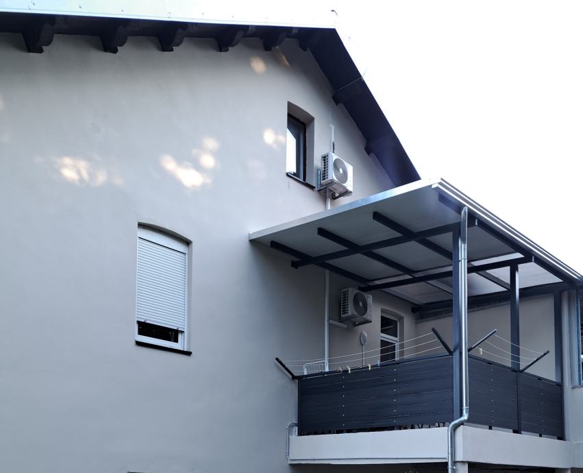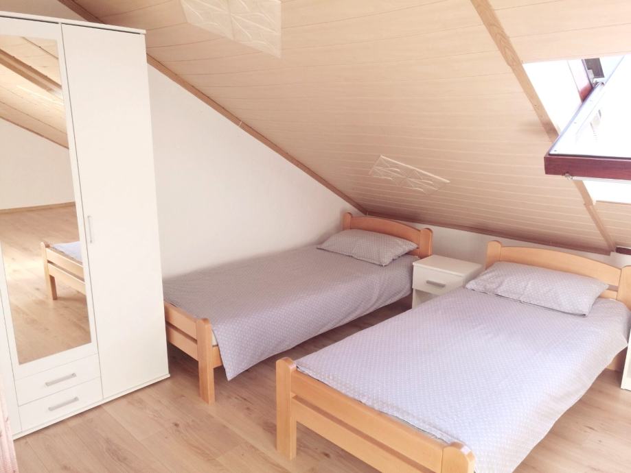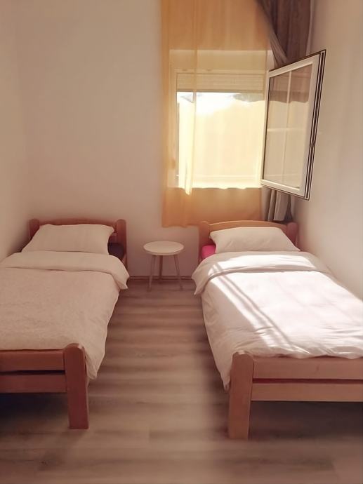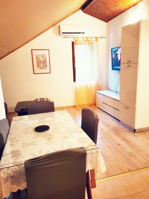 Stan na prvom katu ima 67m2, a stan u potkrovlju 55m2. Odvojeni ulazi, kompletno namješteni, klimatizirani.