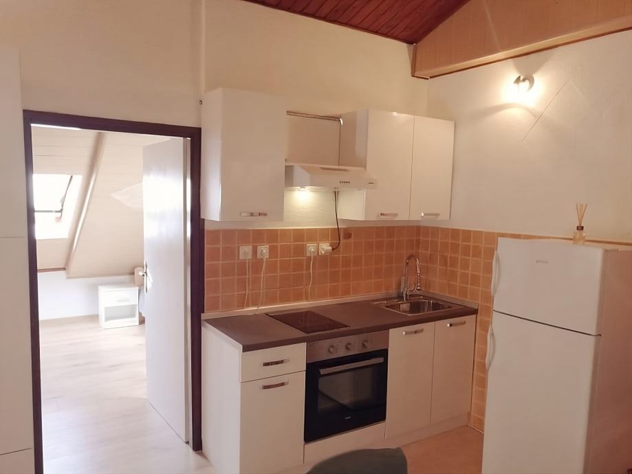 Stan u potkrovlju sastoji se od ulaznih stepenica, hodnika, kupaonice, dnevnog boravka sa kuhinjom i sobe.