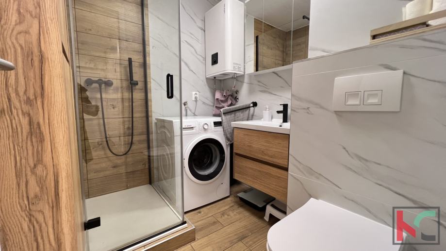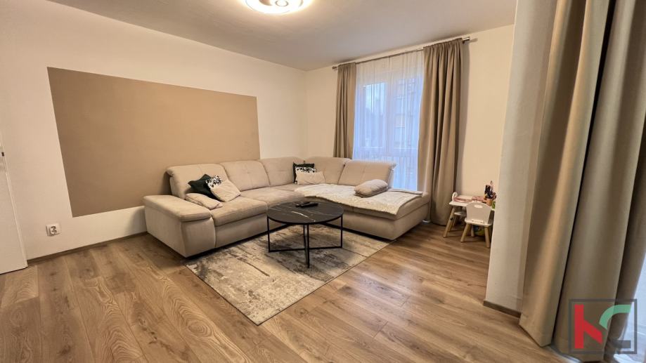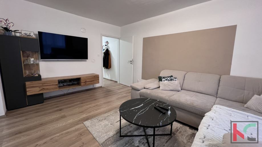 Stan je kompletno adaptiran što podrazumijeva nove instalacije struje i cijevi vode, novi podovi, keramika u kupaonici i kuhinji, unutarnja i vanjska stolarija, novi namještaj, kratko korišten koji ostaje.